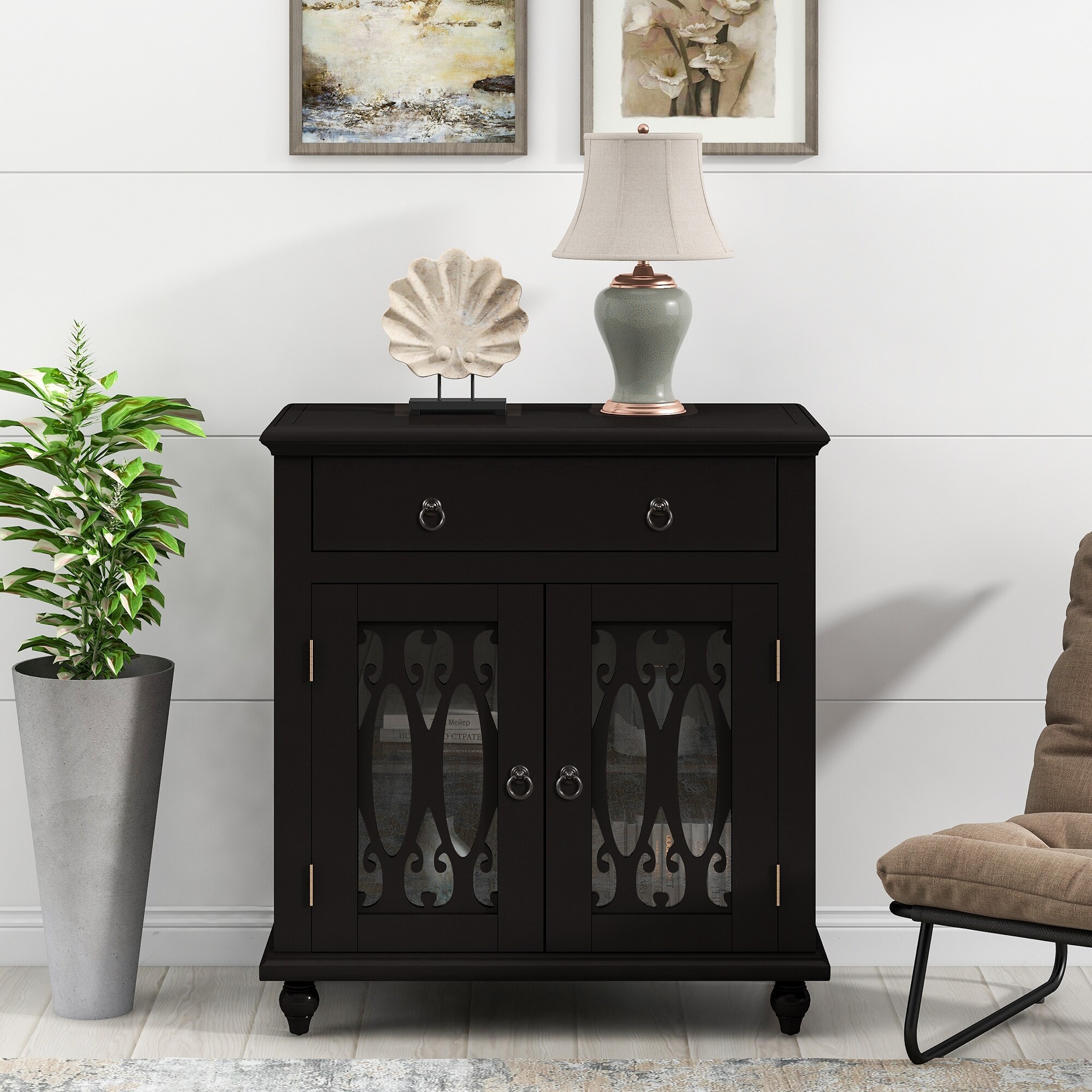 Global Pronex 31.5'' Wood Accent Buffet Sideboard Storage Cabinet with Doors and Adjustable Shelf, Entryway Kitchen Dining Room