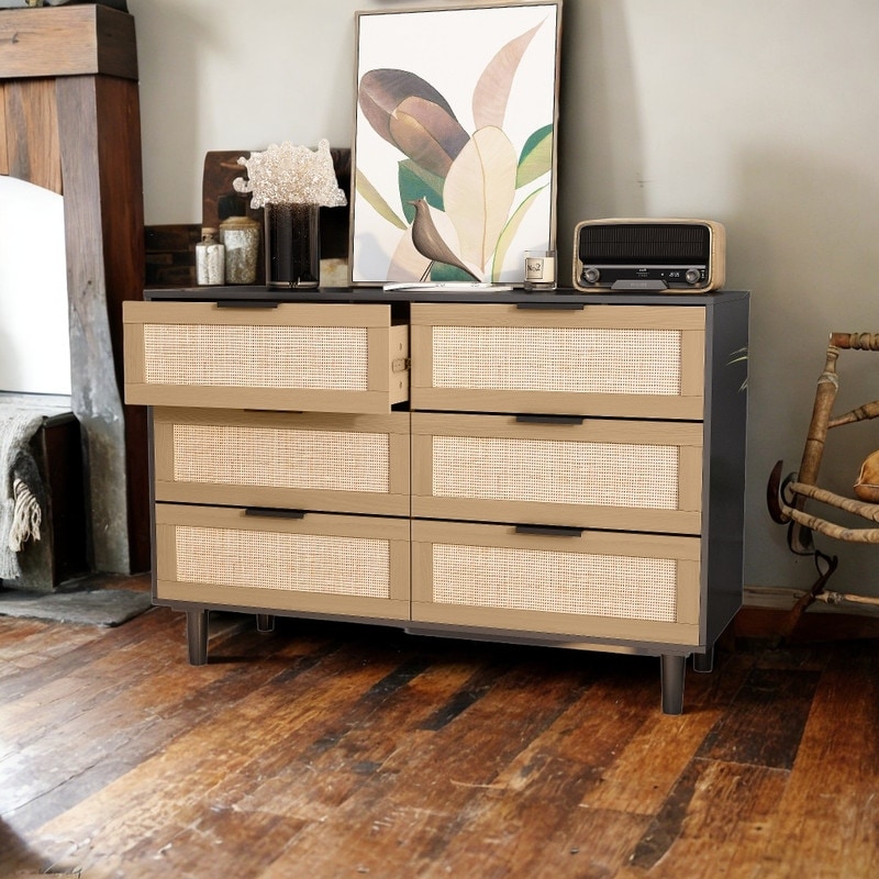 Modern Style Storage Cabinet with 6 Rattan Drawers for Hallway, Living room, Dining Room