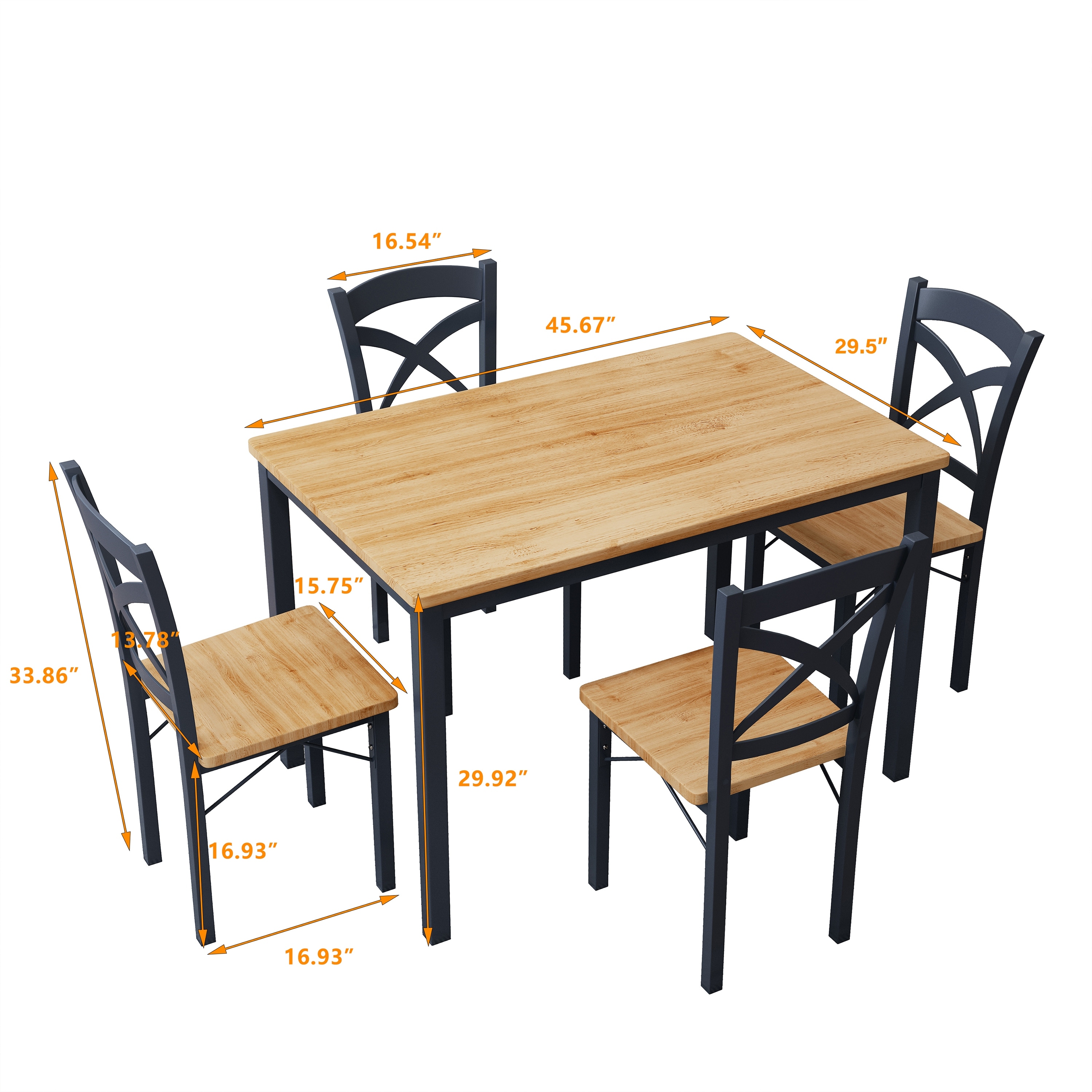 Farmhouse 5-Piece Wooden Dining Table Set with Rectangular Dining Table and Cross Back Dining Chairs for Dining Room
