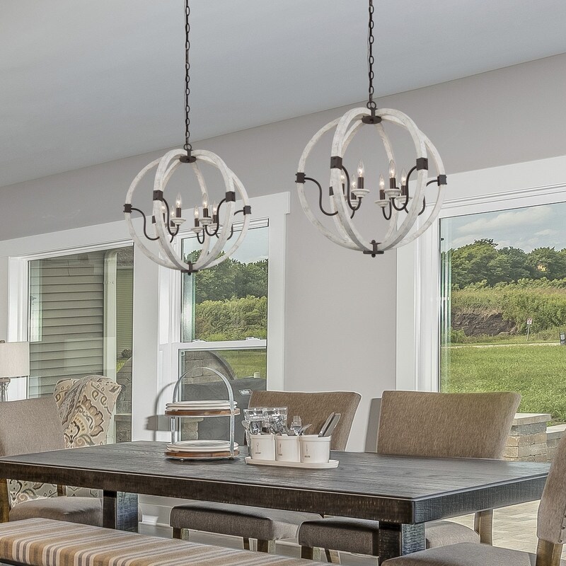 Loby Farmhouse 6-light Large Orb Solid Wood Chandelier Traditional Globe Dining Room Light