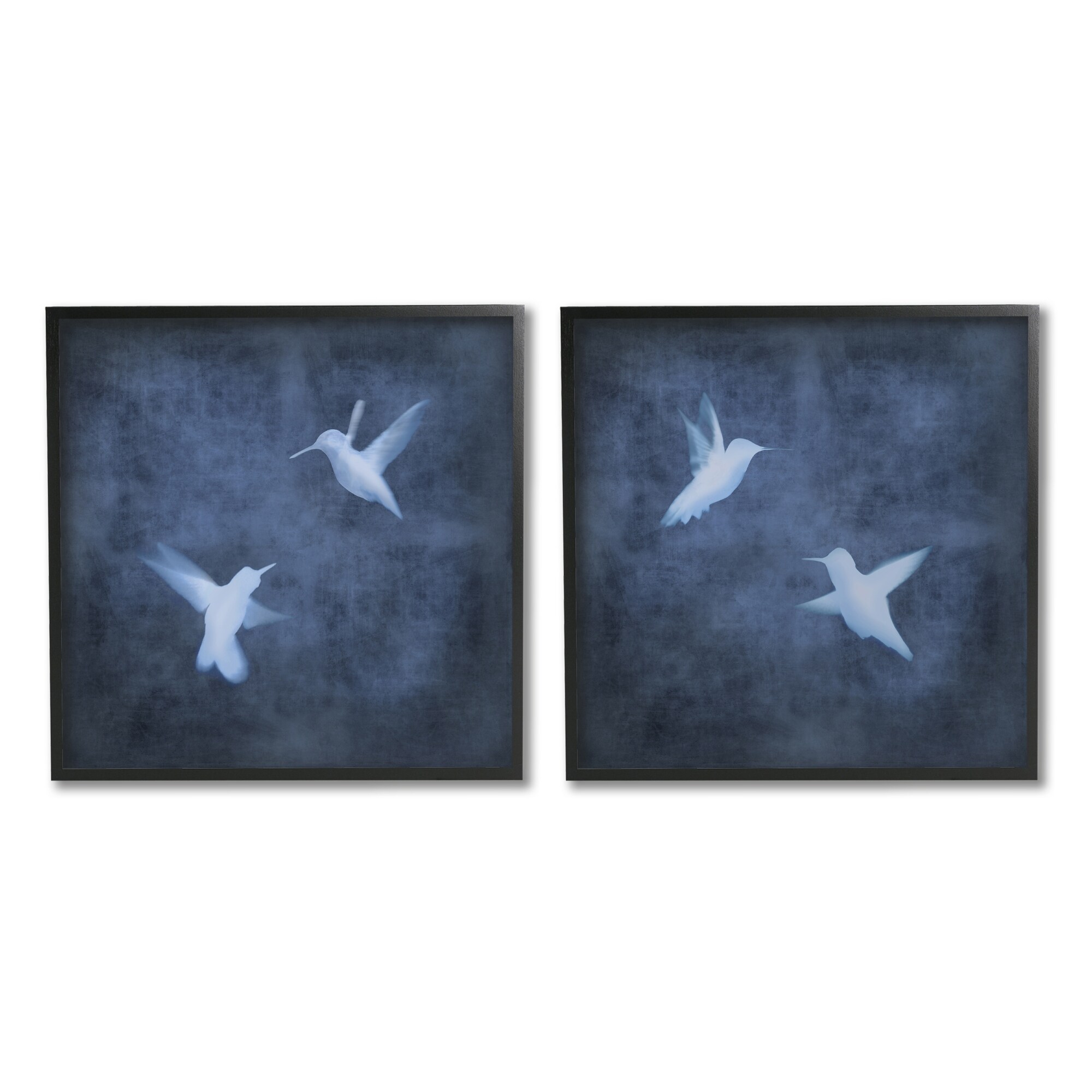 Stupell Industries Abstract Blue Hummingbirds Silhouettes Framed Giclee Art by Chris Donovan