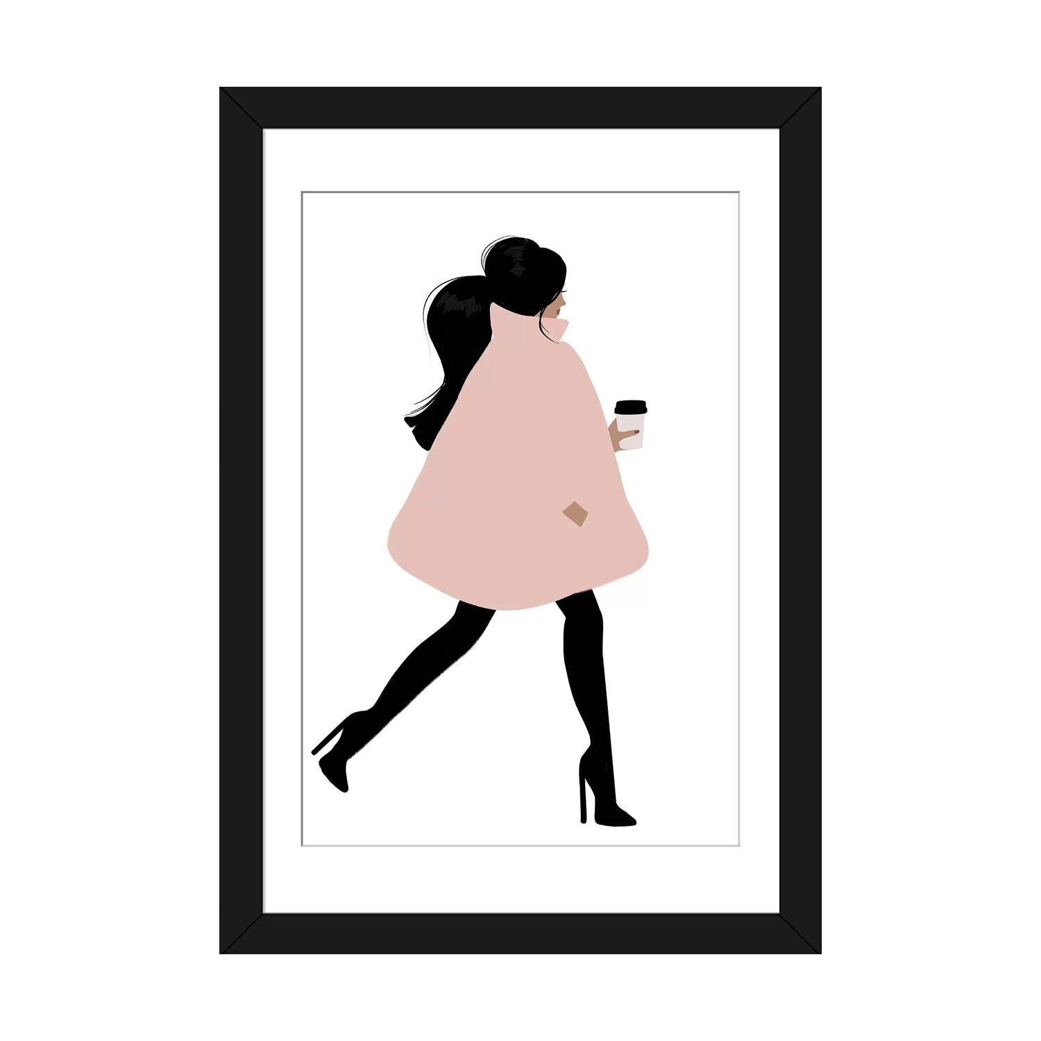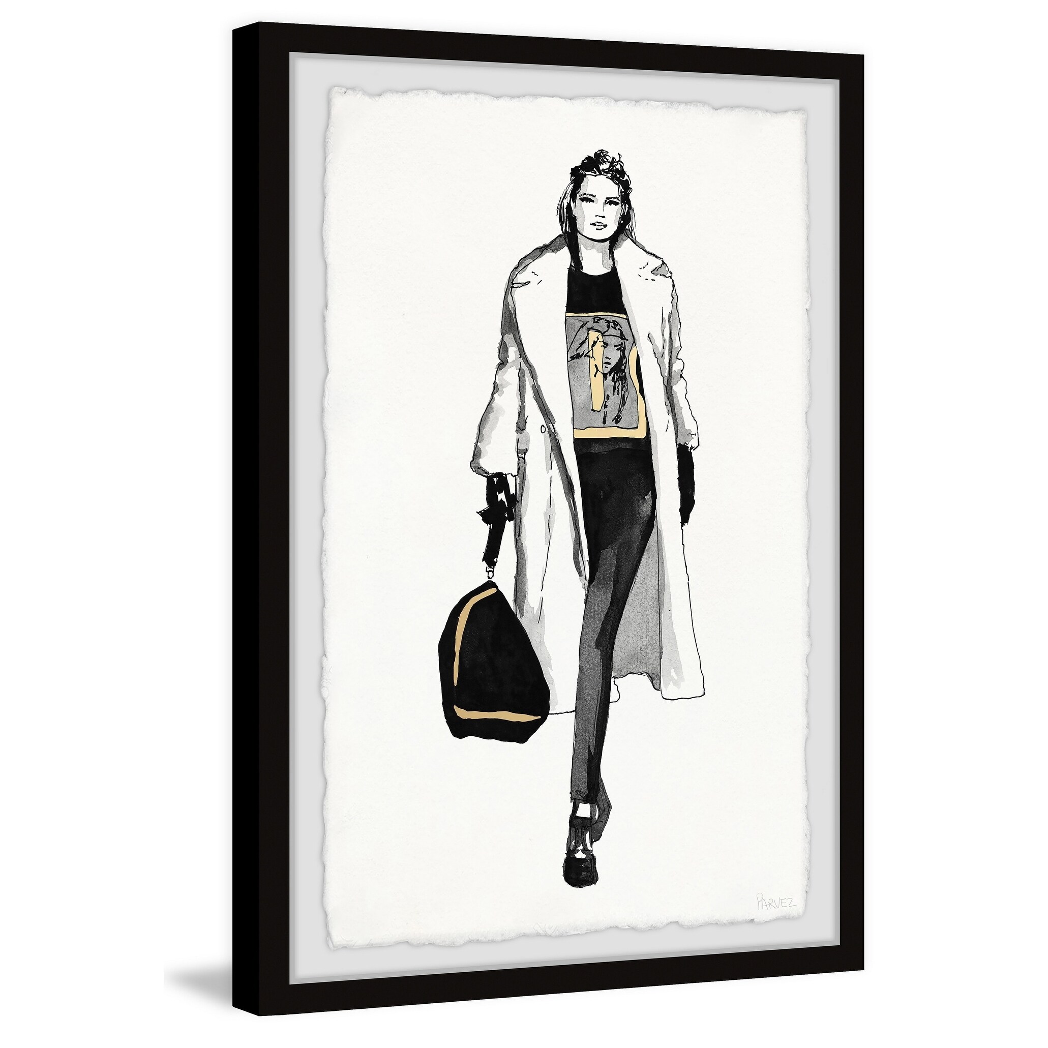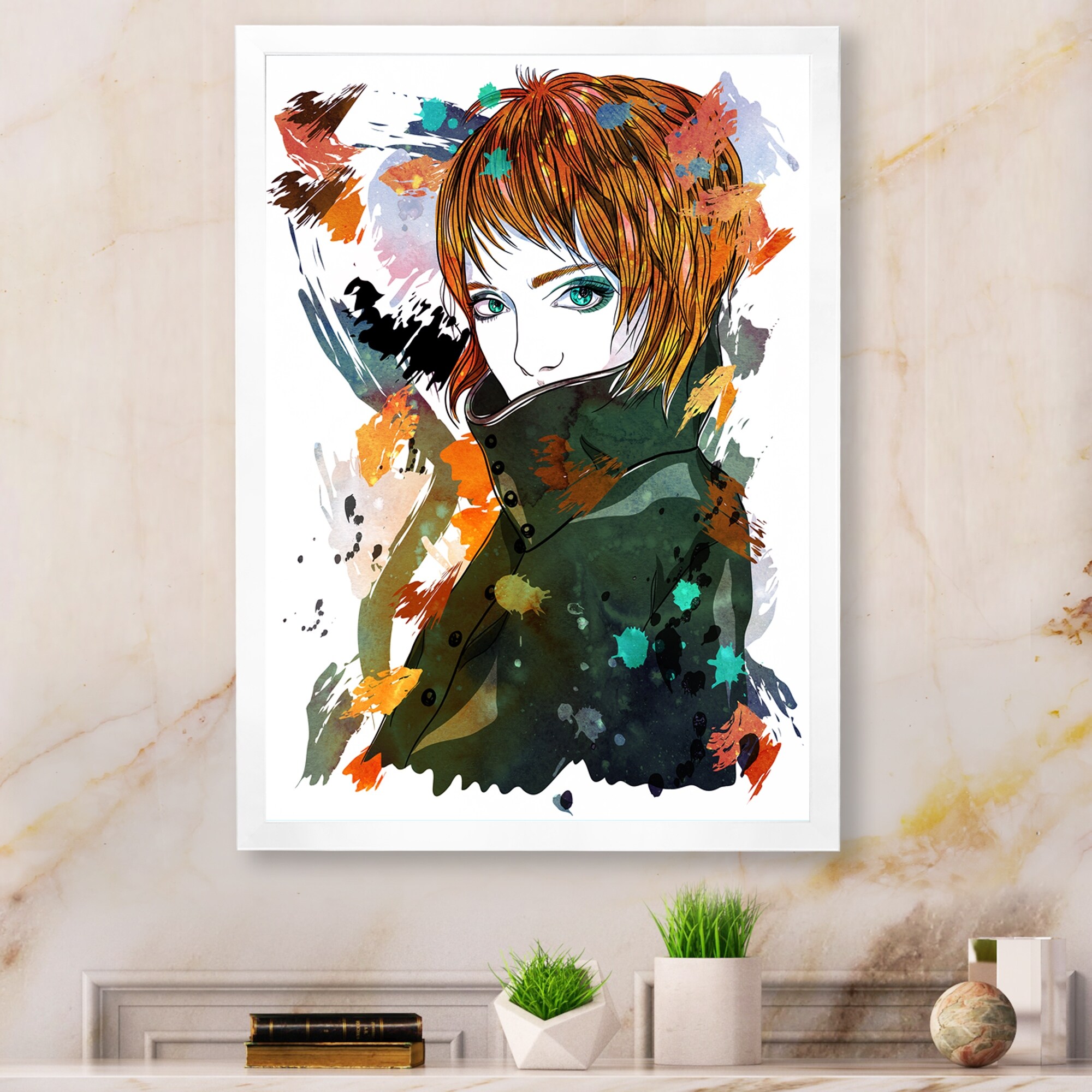 Designart "Brown Hair Girl in A Coat" Glam Framed Wall Art