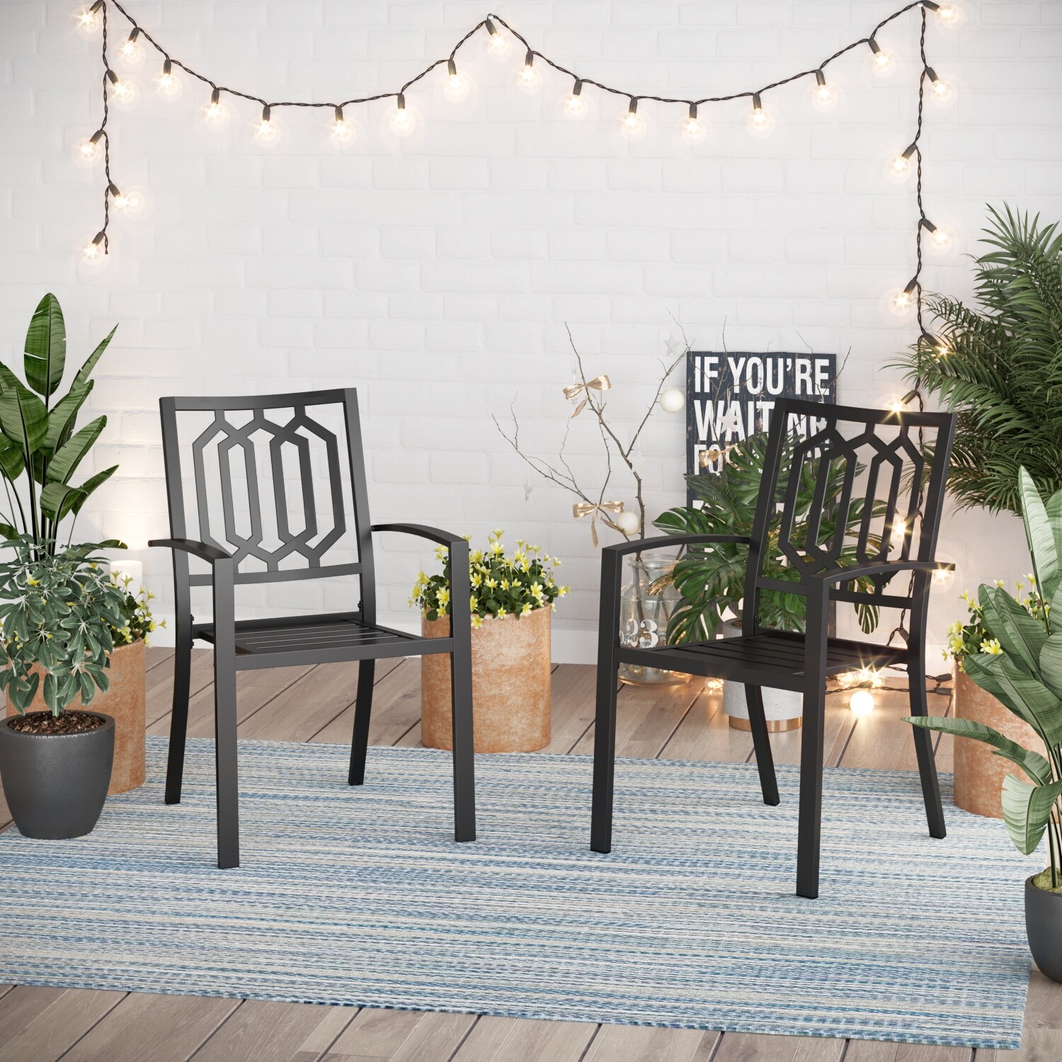2-Piece Outdoor Patio Metal Dining Chairs for Garden,Backyard E-coating Weather-resistant Stackable Armchairs