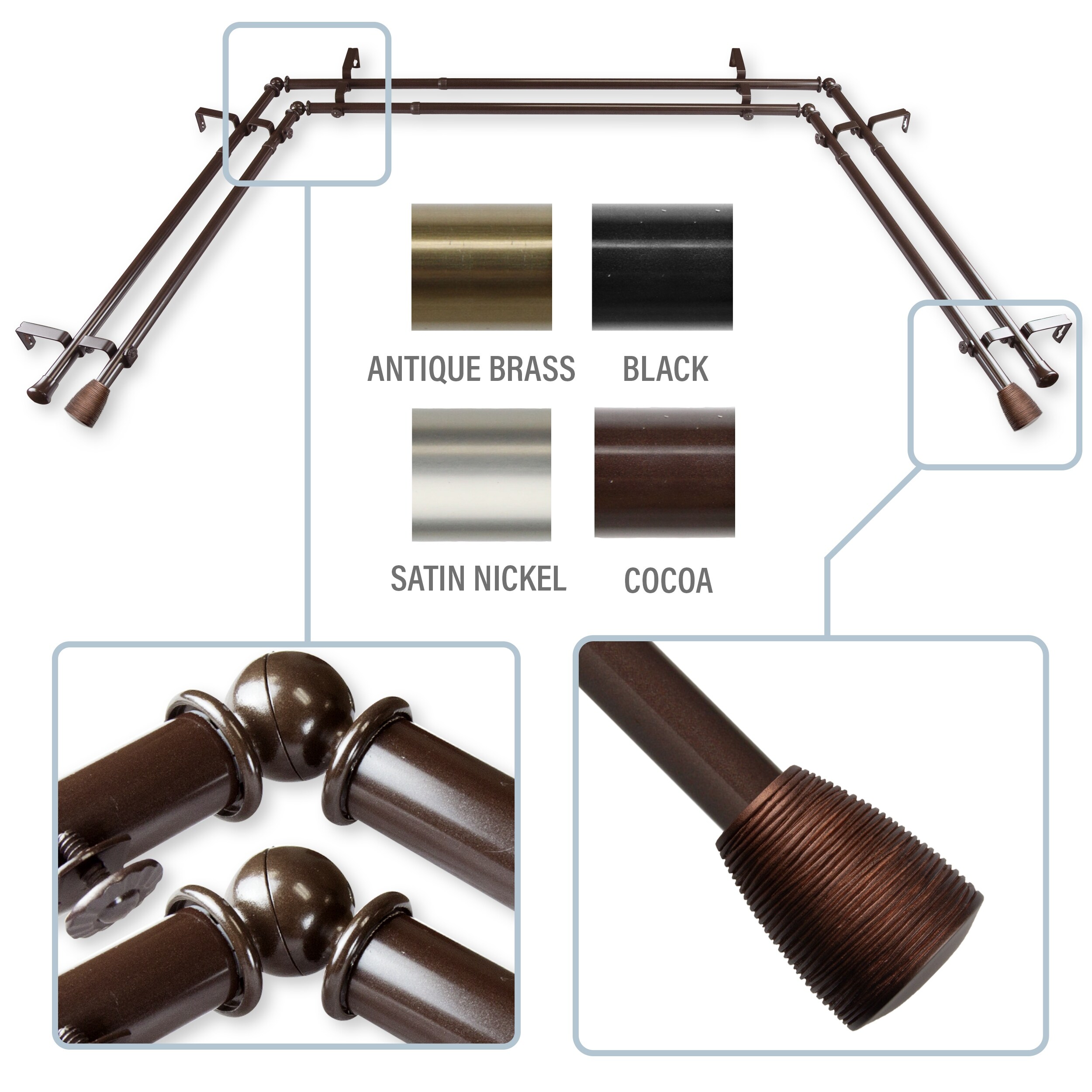 InStyleDesign Sphere Mocha Adjustable Double Curtain Rod with Finial Set