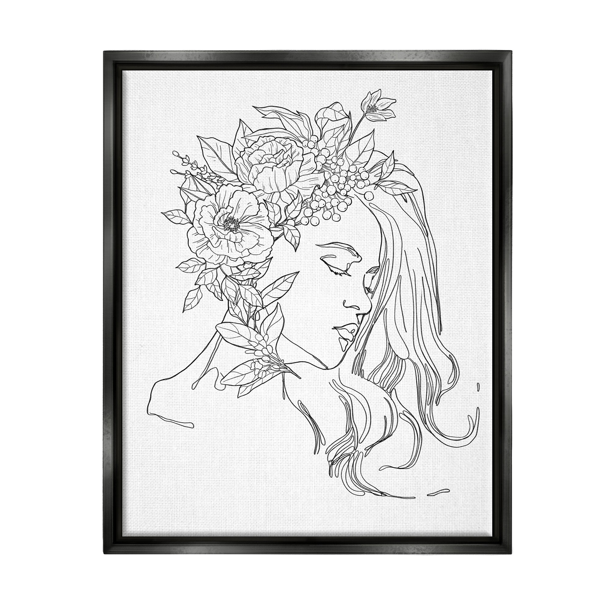 Stupell Industries Woman Face Detailed Blossoming Flowers Line Drawing Floater Frame, Design by Ziwei Li