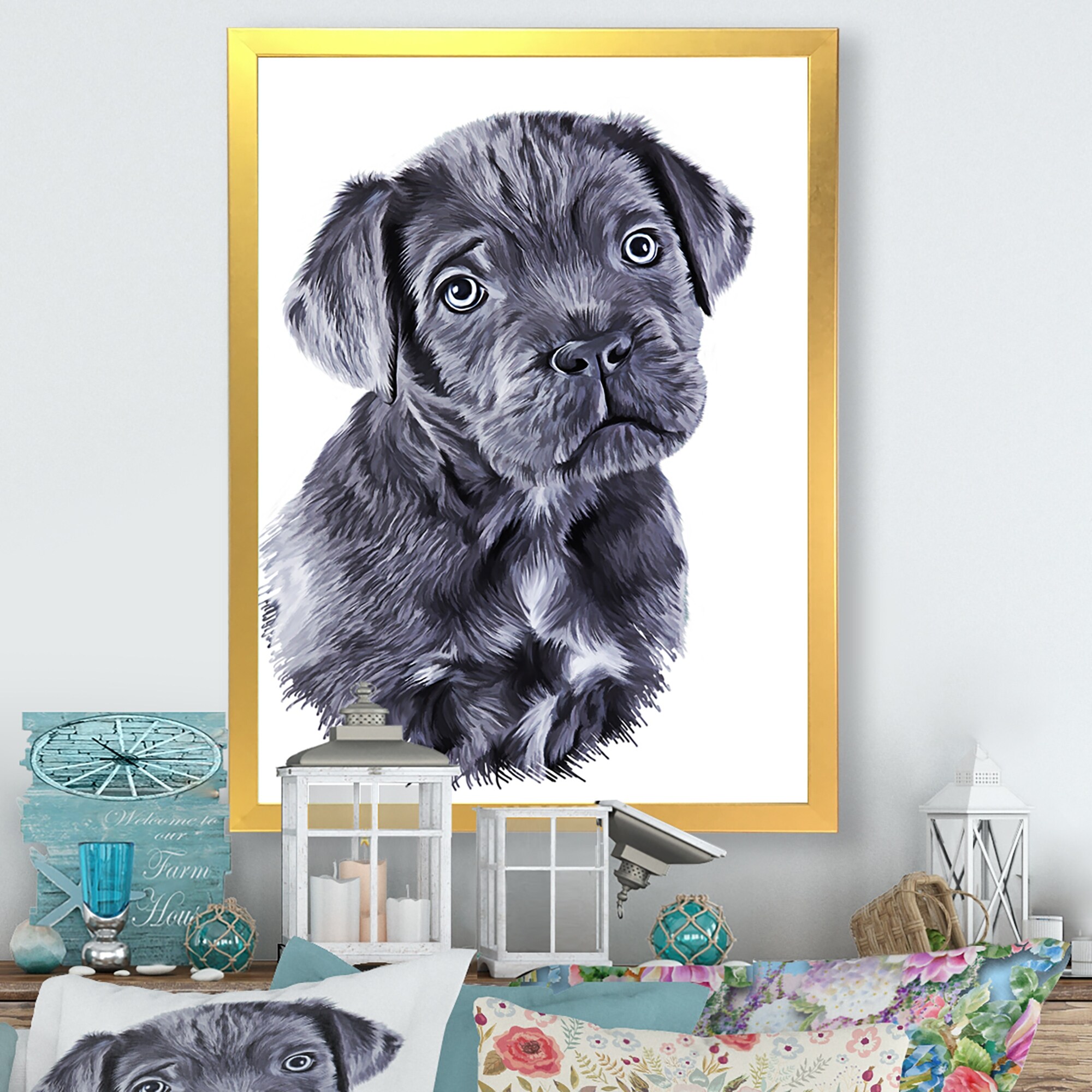 Designart "Drawing Dog Breed Cane Corso" Traditional Framed artwork