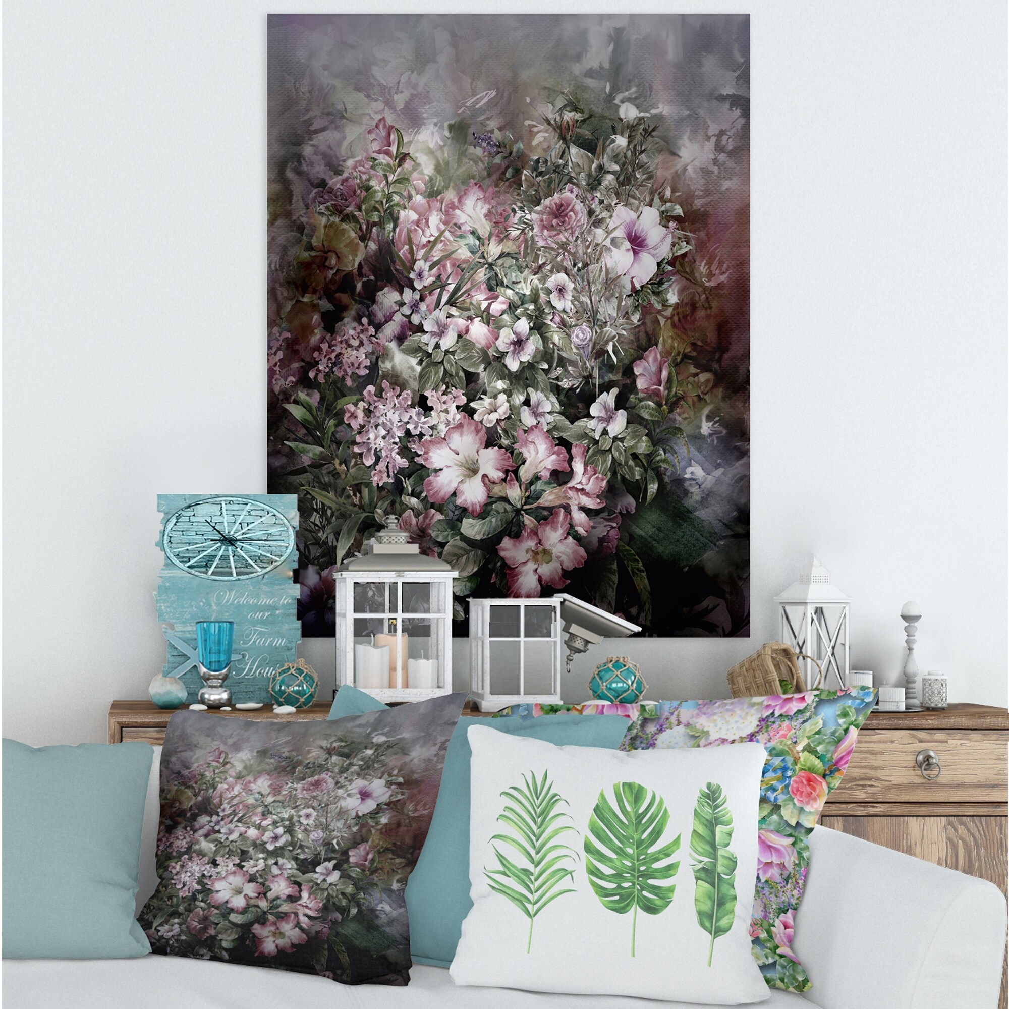 Designart "Retro Drawing of Flowers IV" Vintage Framed Canvas Wall Art Print