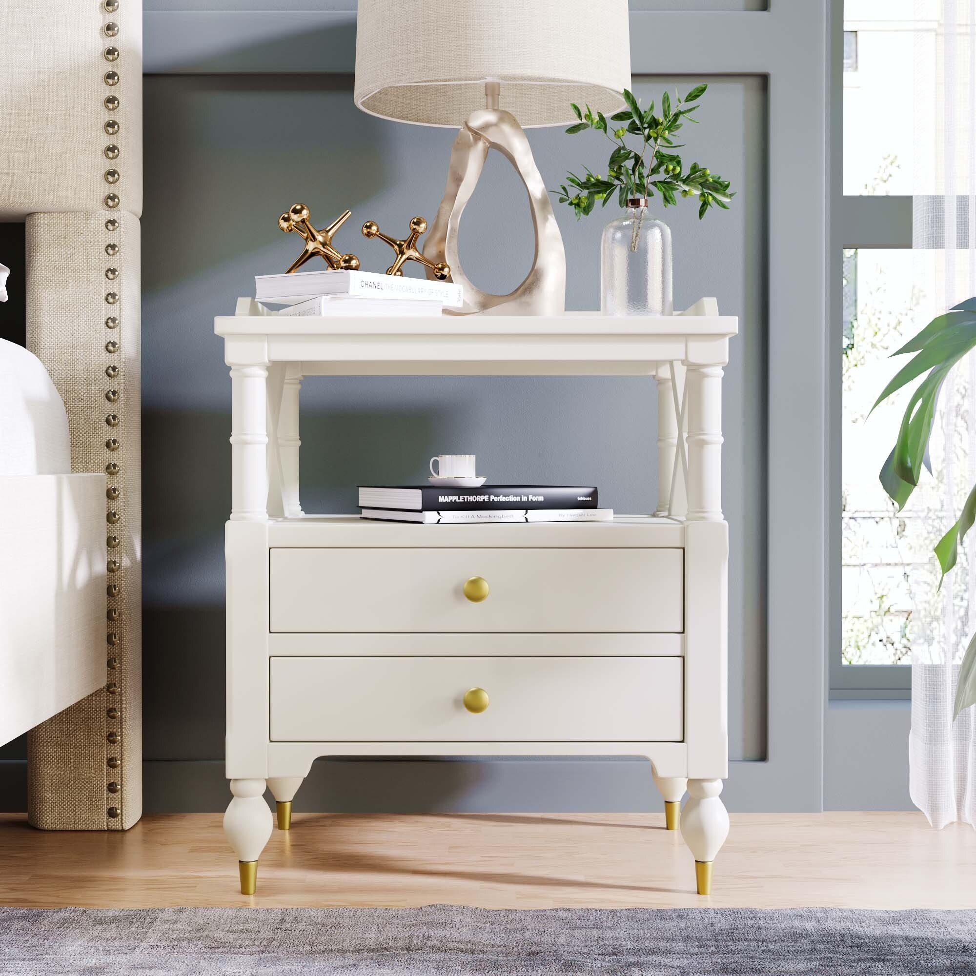 Lantha Nightstand with 2 Spacious Storage Drawers ,Transitional Style