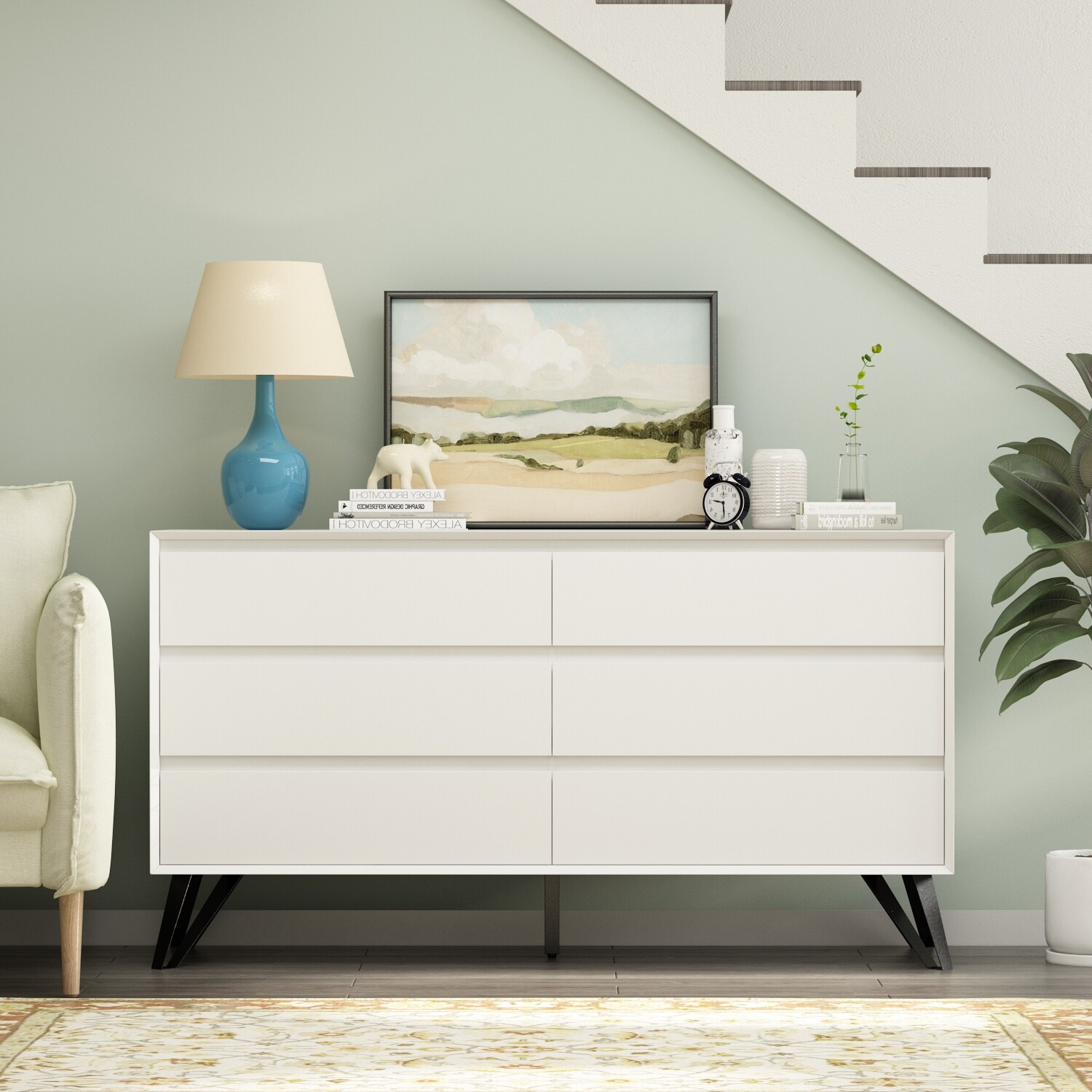 Timechee 6 Drawer 54'' Double Dresser With Metal Legs Beveled Drawer