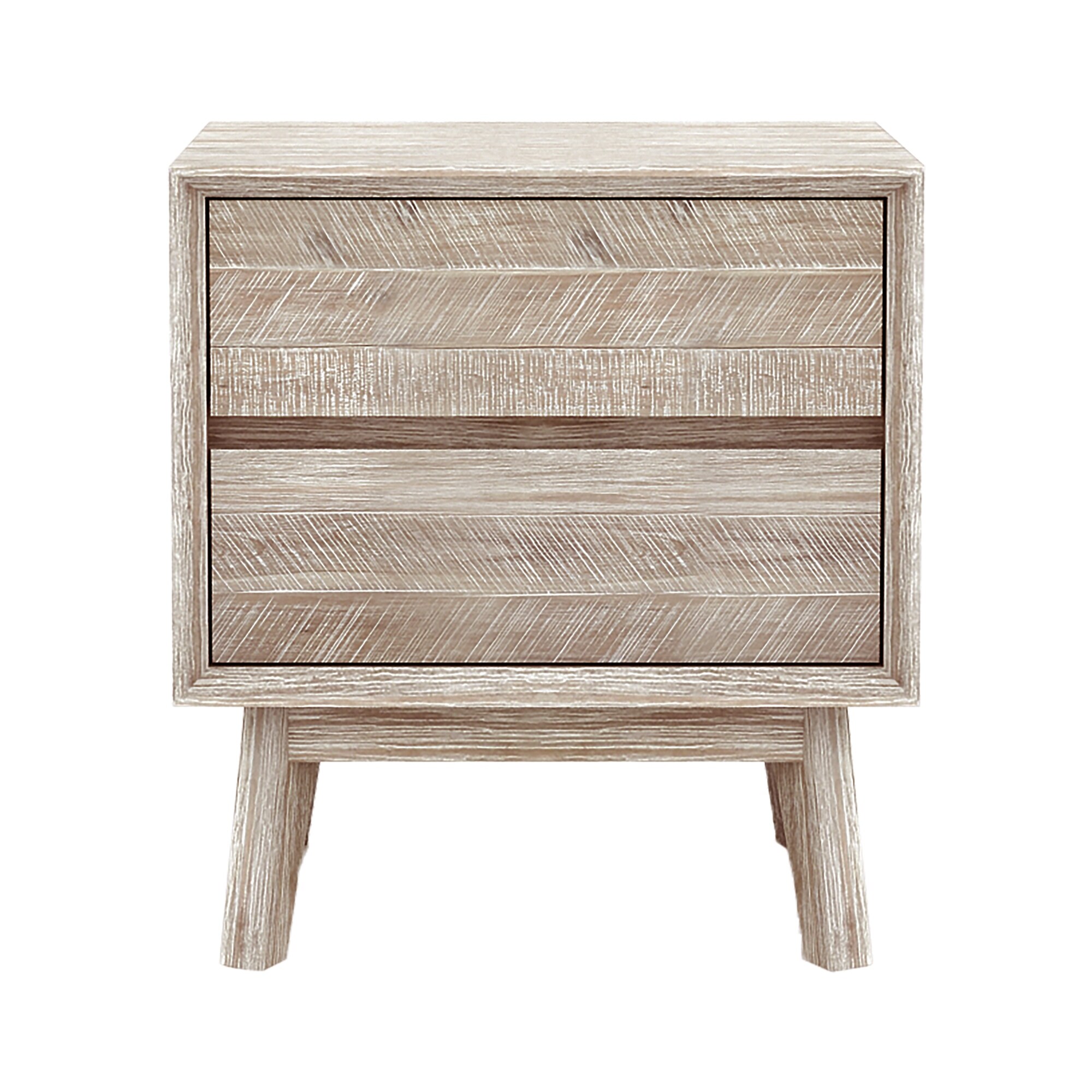 Wooden Nightstand with 2 Drawers in Weathered Gray