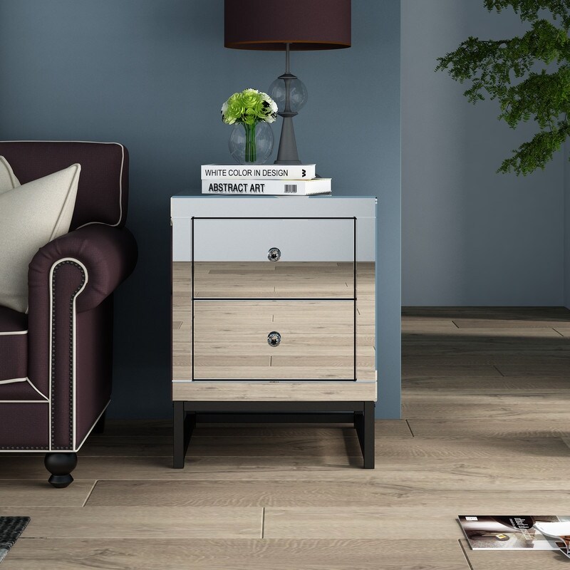 Modern 2 Drawer Nightstand in Bedroom Living Room