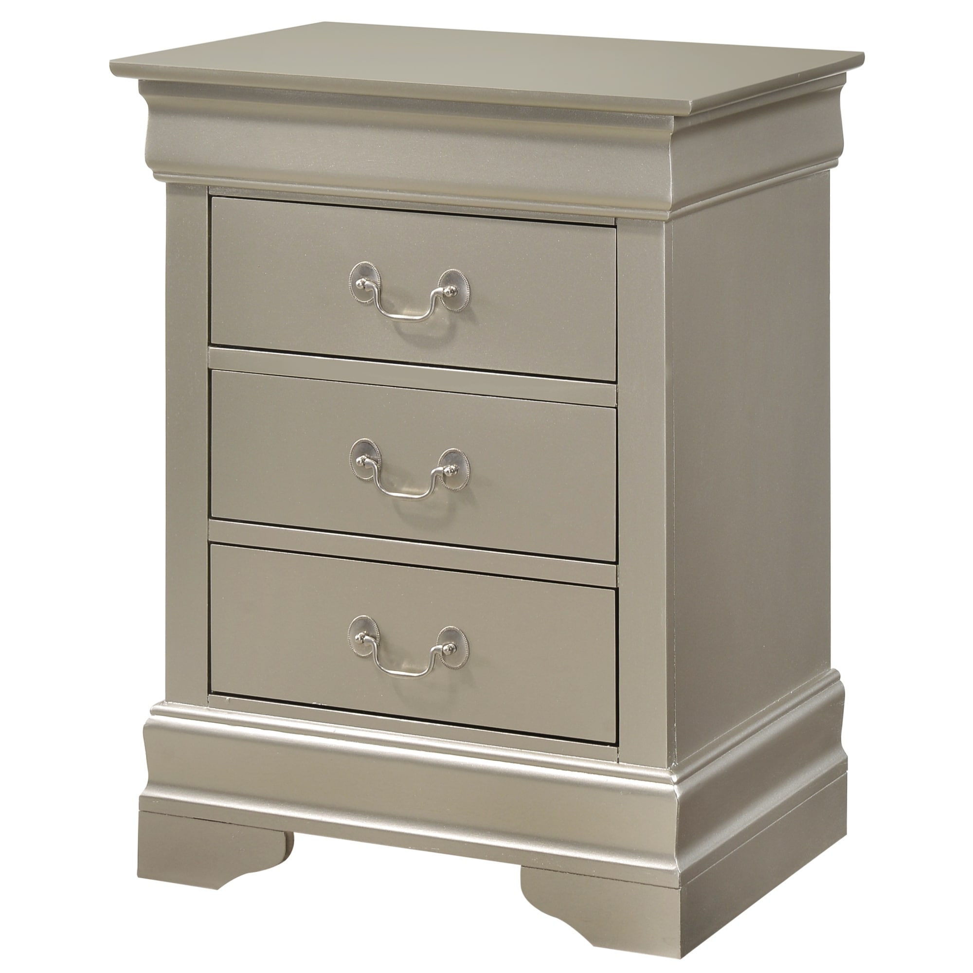 28" Traditional Style Solid Wood Nightstand with Silver Finish and 2 Drawers with Metal Handle for Bedroom