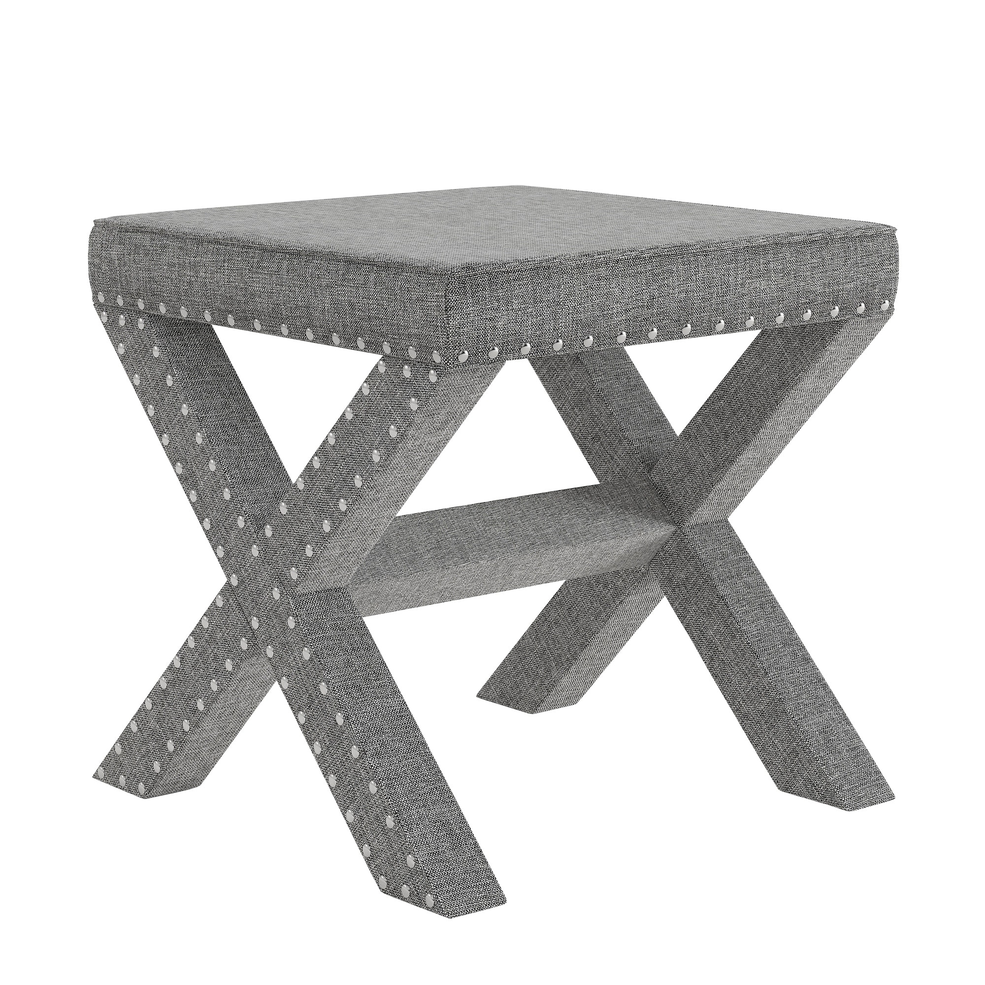 Parton Linen Fabric X-Base Nailhead 17 Inch Ottoman Bench by iNSPIRE Q Bold