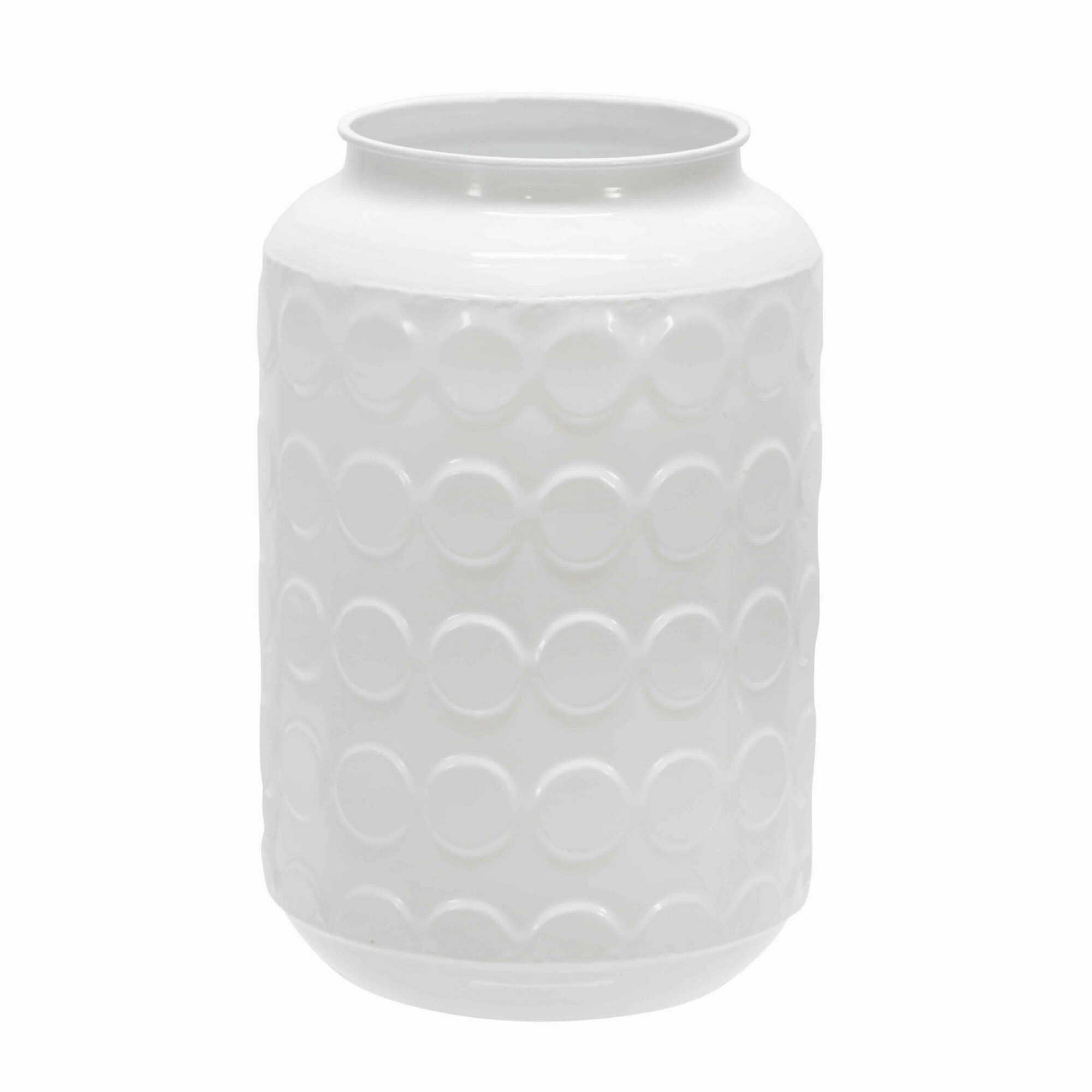 Metal Jar Design Vase with Embossed Spotted Design, White