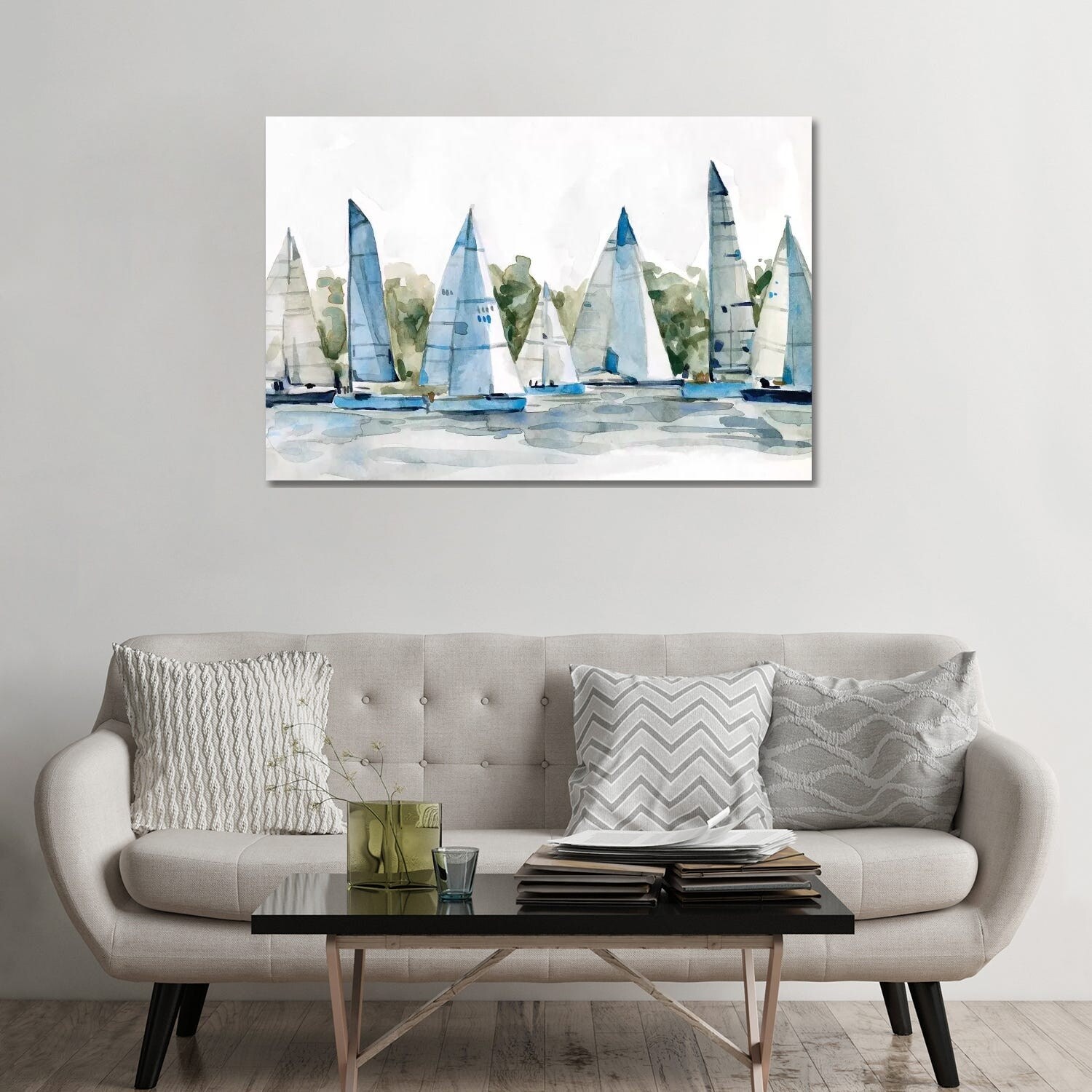 iCanvas "Watercolor Boat Club II" by Emma Scarvey Framed