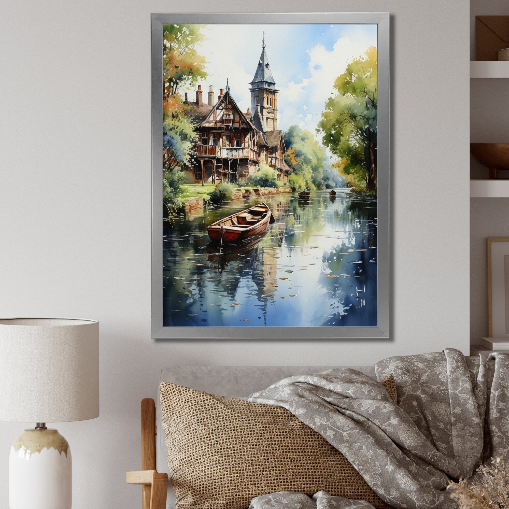 Designart "England Peaceful Canalengland Landscape II" England Framed Wall Decor