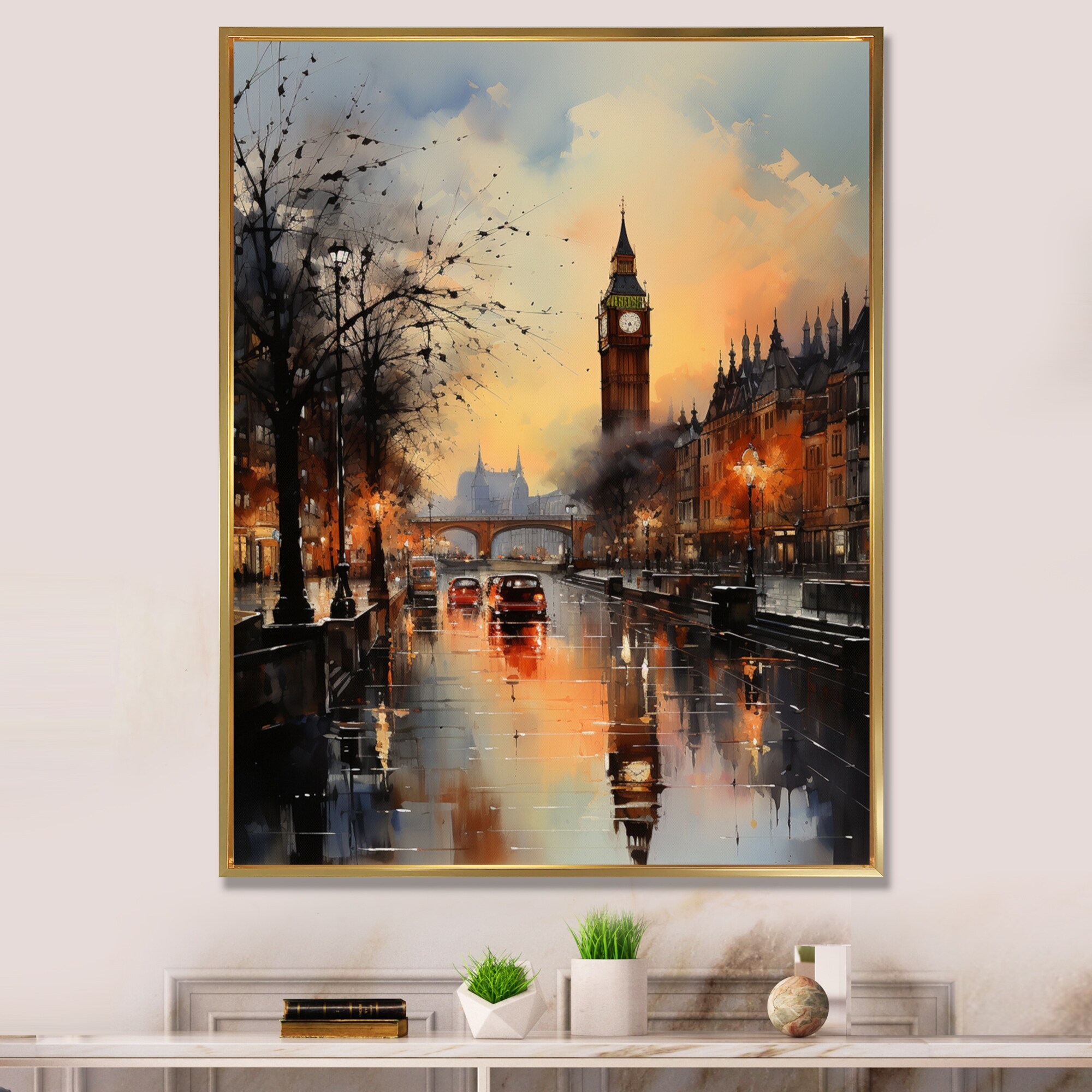 Designart "England City Skylineengland Landscape VI" England Framed Canvas Prints