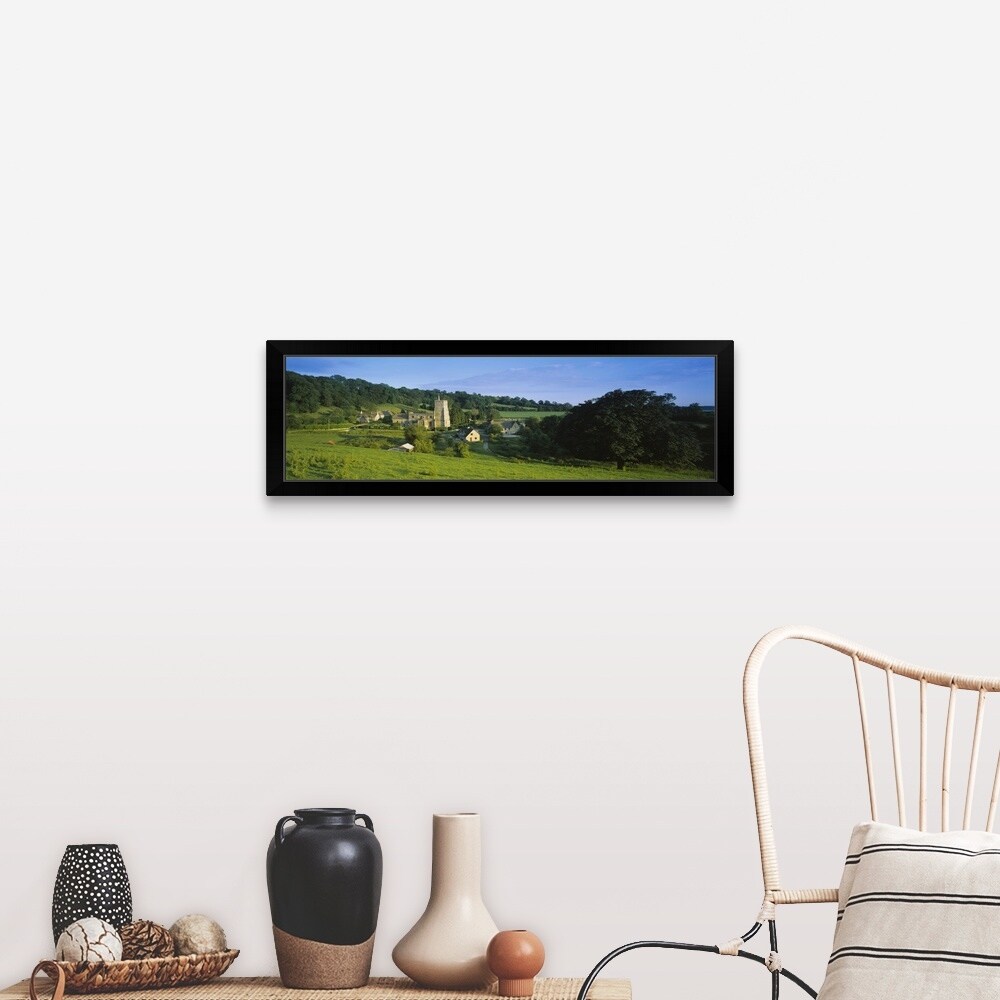 "Buildings on a landscape, Hawkesbury, Gloucestershire, Cotswold, England" Black Framed Print