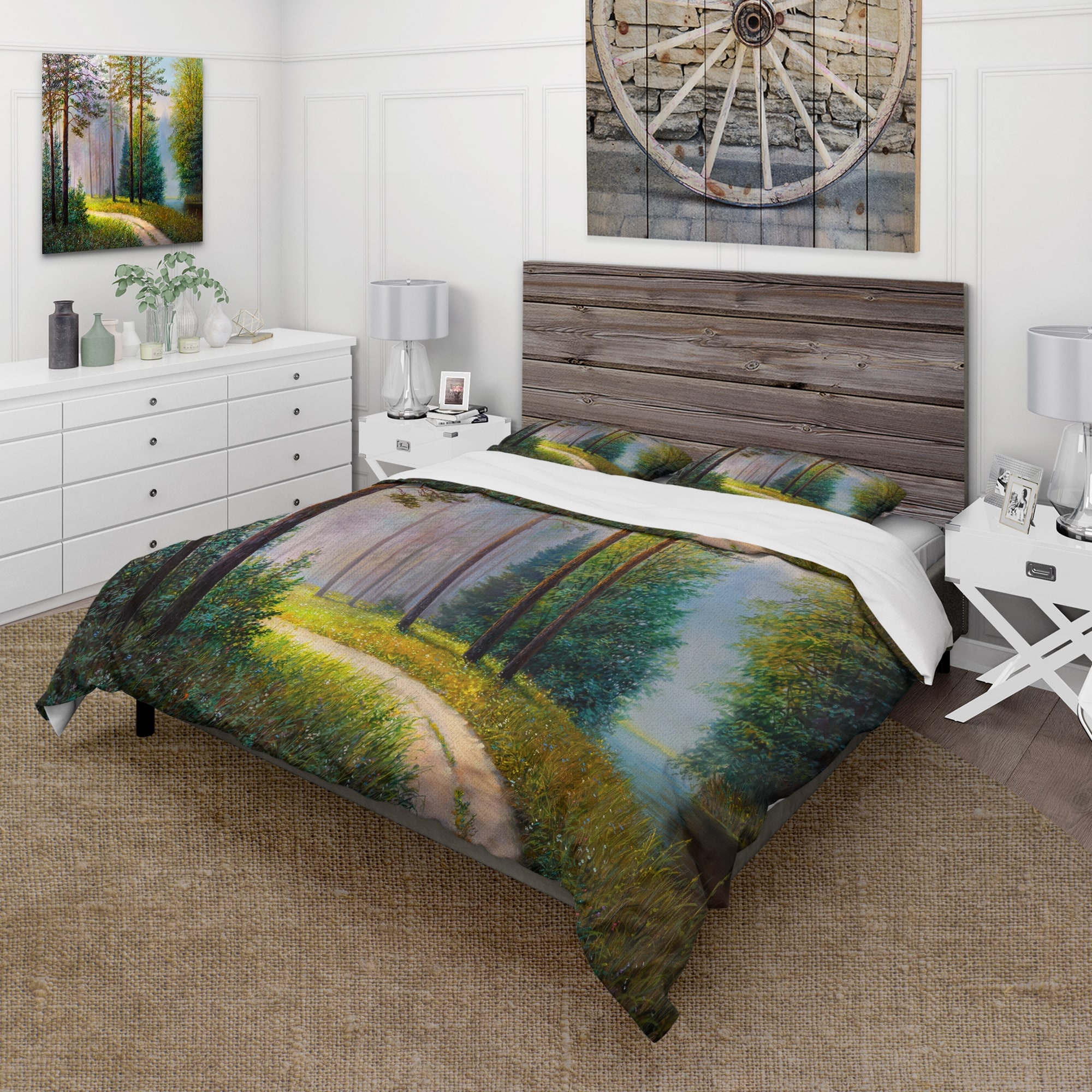 Designart 'Subtle Evening Light Through the Trees II' Lake House Duvet Cover Comforter Set