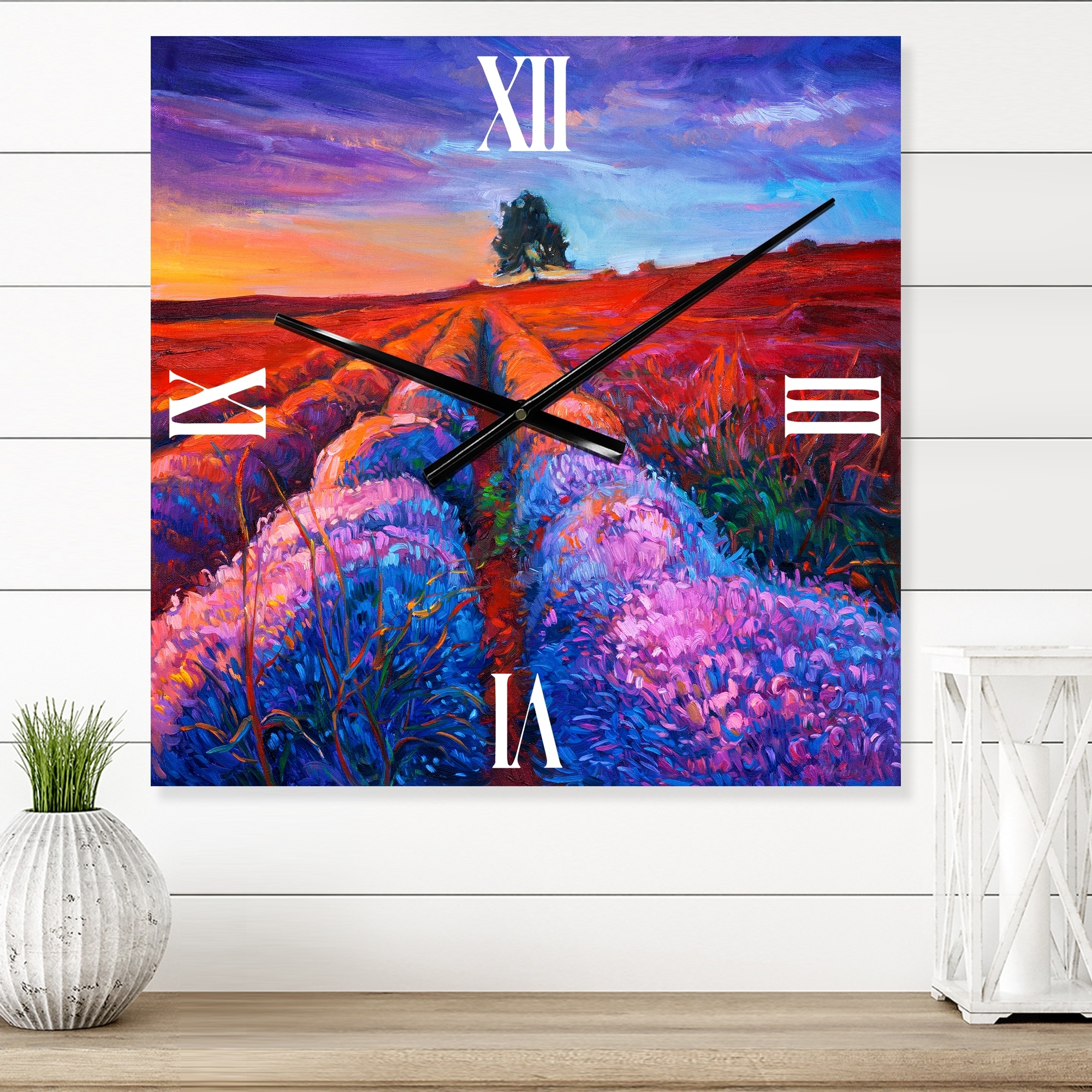 Designart 'Lavender Fields With Distant Tree & Evening Glow' Farmhouse Wall Clock Decor