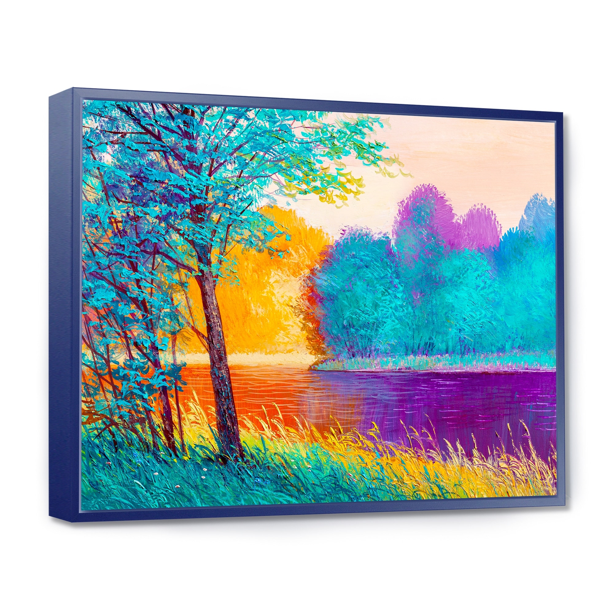 Designart "Colorful Summer F orest With River in Purple Evening Glow" Farmhouse Framed Canvas Wall Art Print