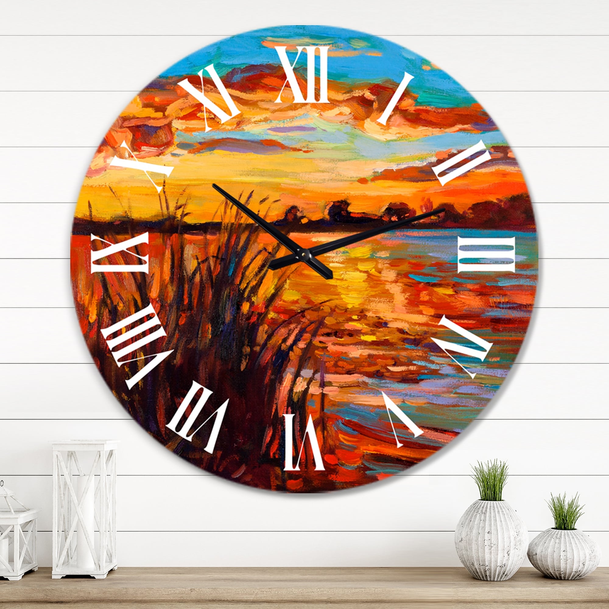 Designart 'Sunset Evening Glow At the Lake I' Nautical & Coastal wall clock