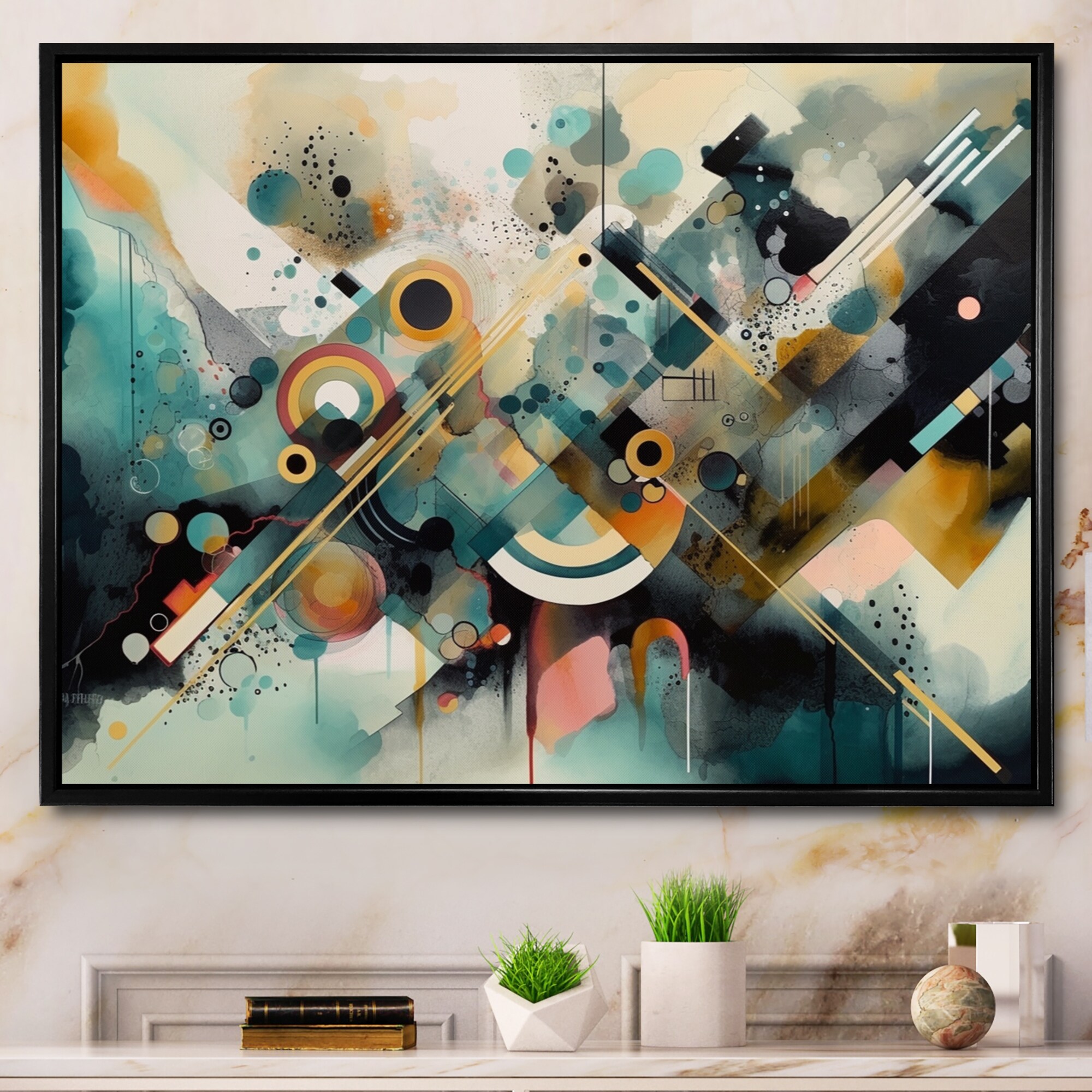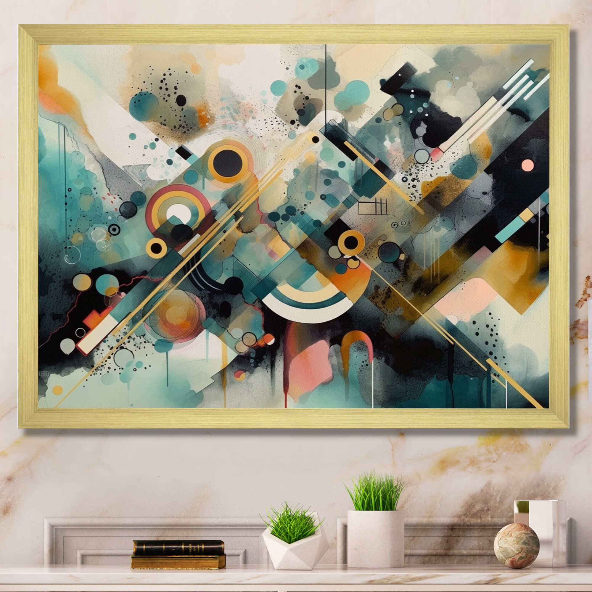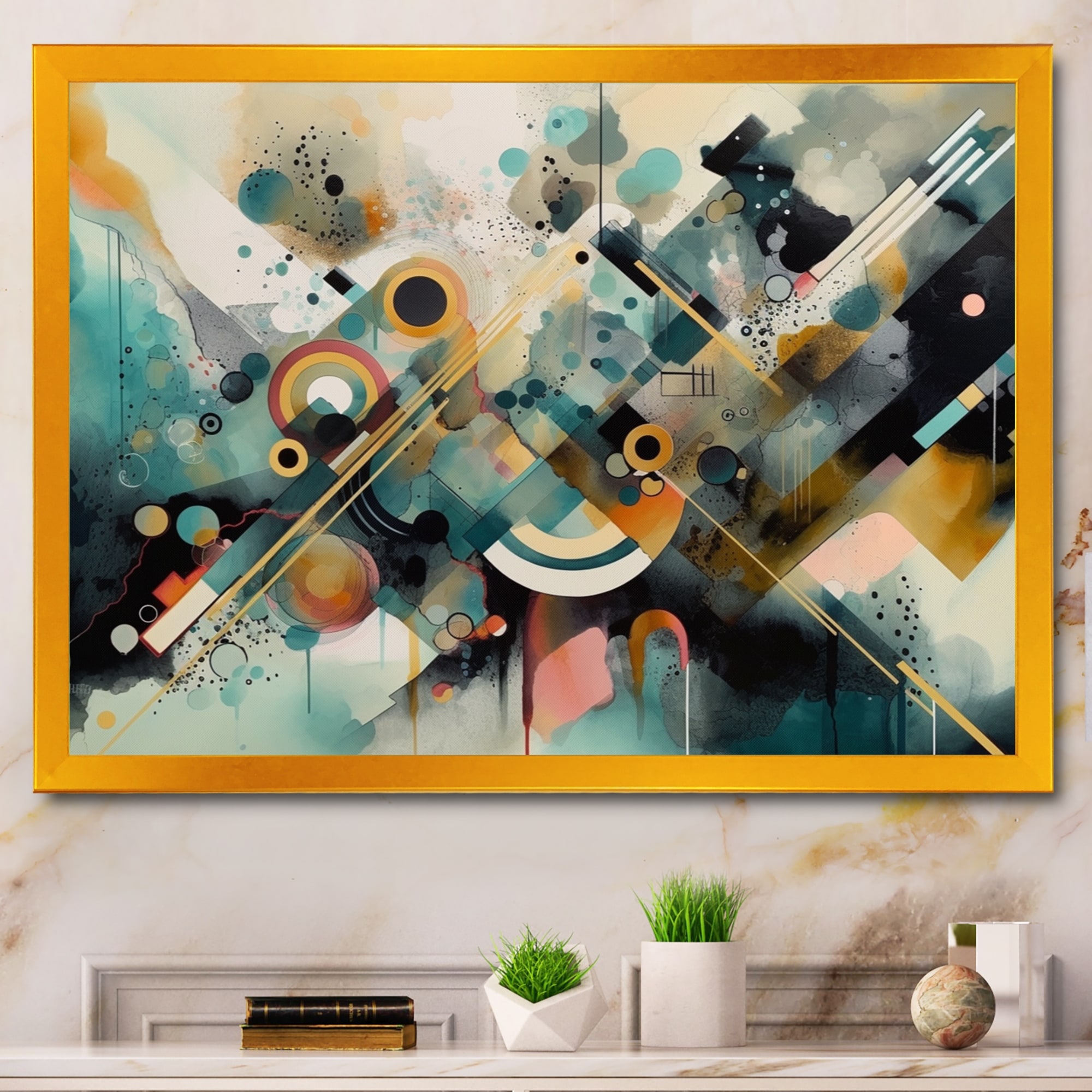 Designart "Abstracted Vibrant Expressions Iii" Modern Geometric Framed Wall Decor