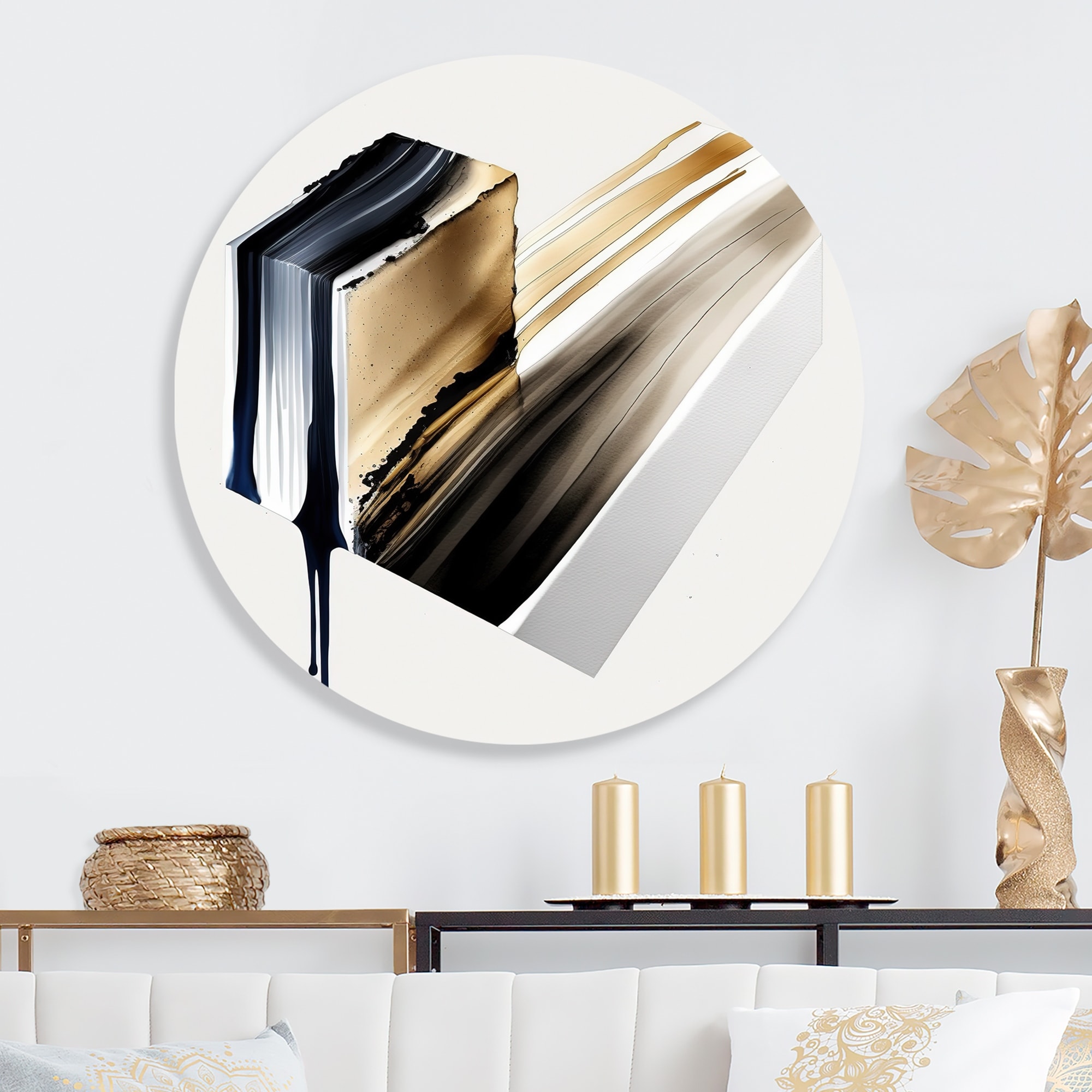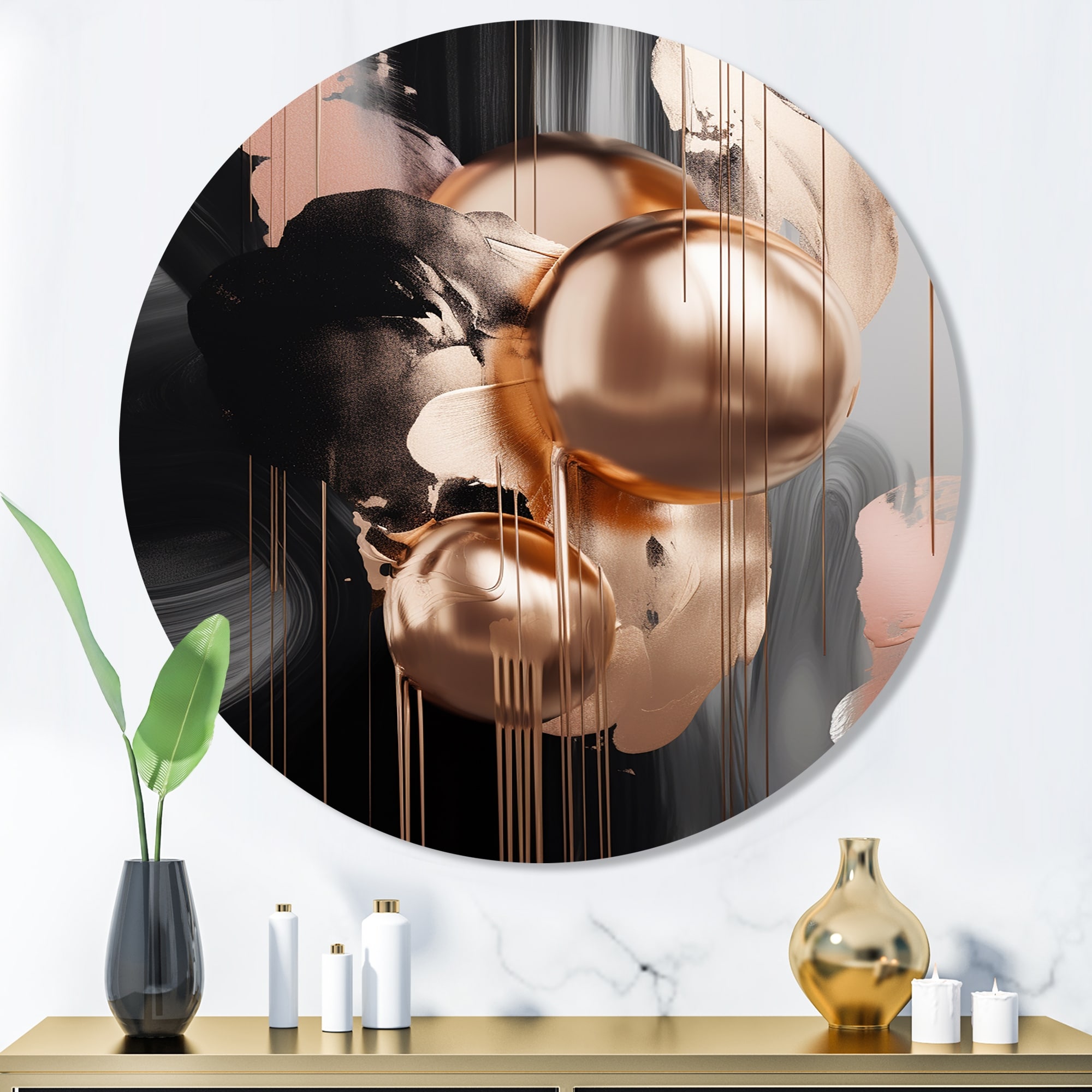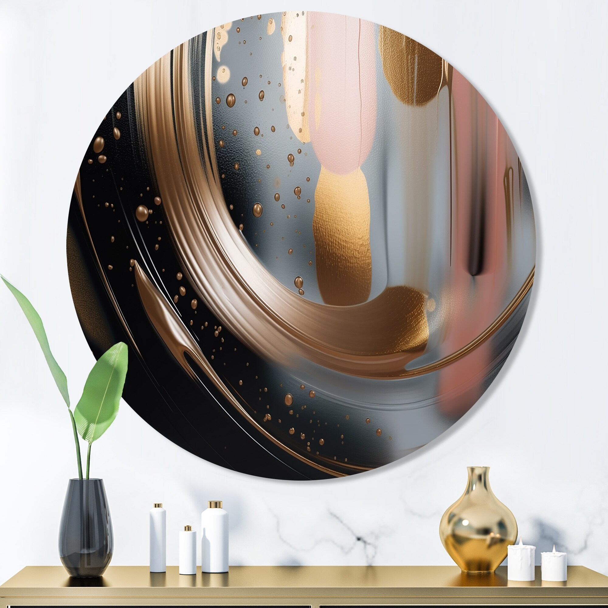 Designart "Gold And Black Marble Expression V" Abstract Marble Metal Round Wall Art