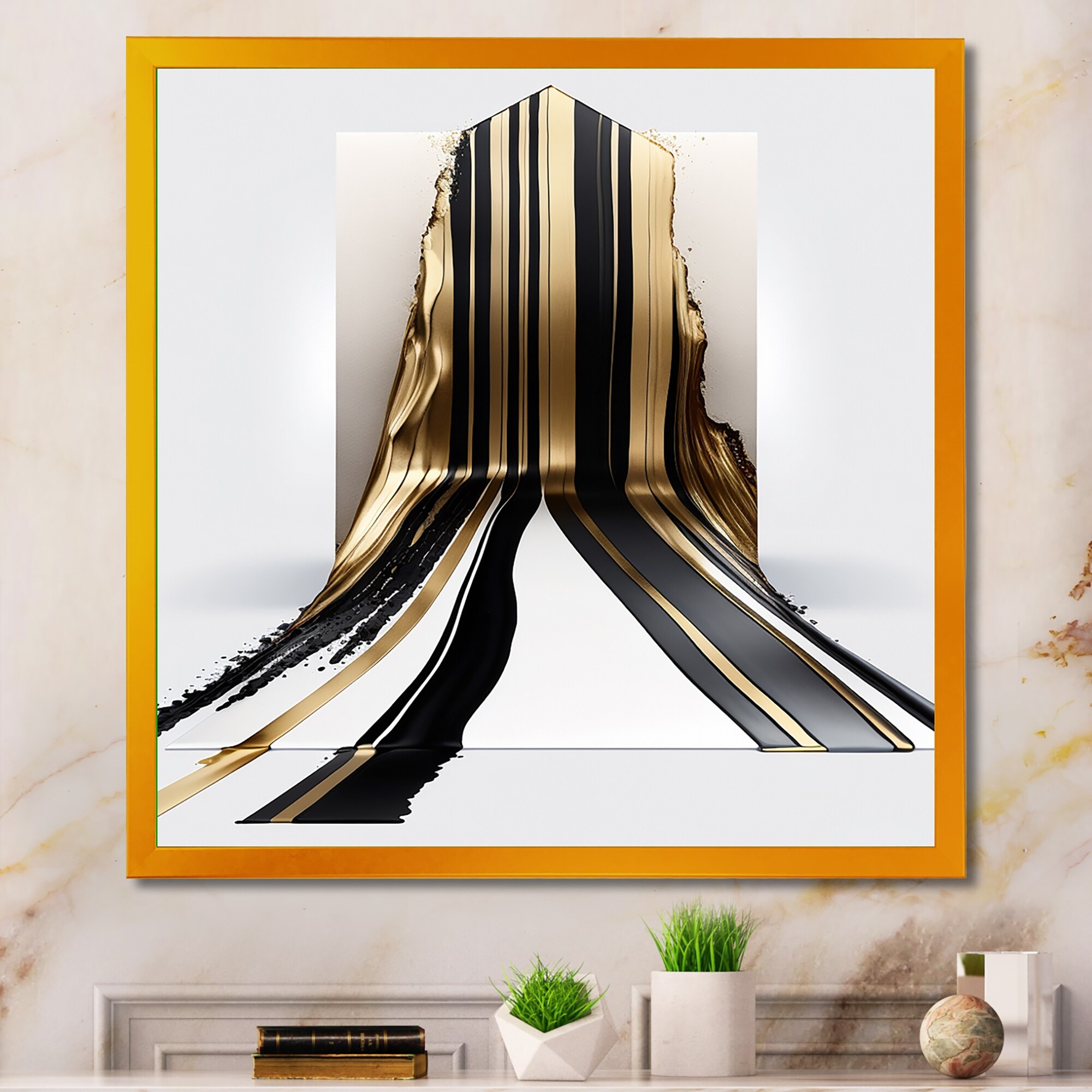 Designart "Gold And Black Marble Expression Iii" Abstract Marble Framed Canvas Prints