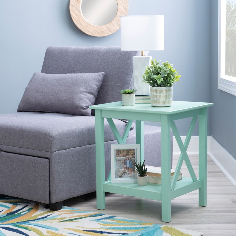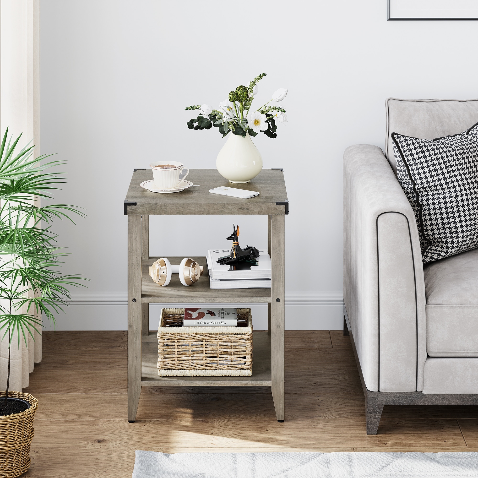 Farmhouse Coffee End Table with Storage Shelf for Living Room, Bedroom - 18"D x 18"W x 23.6"H
