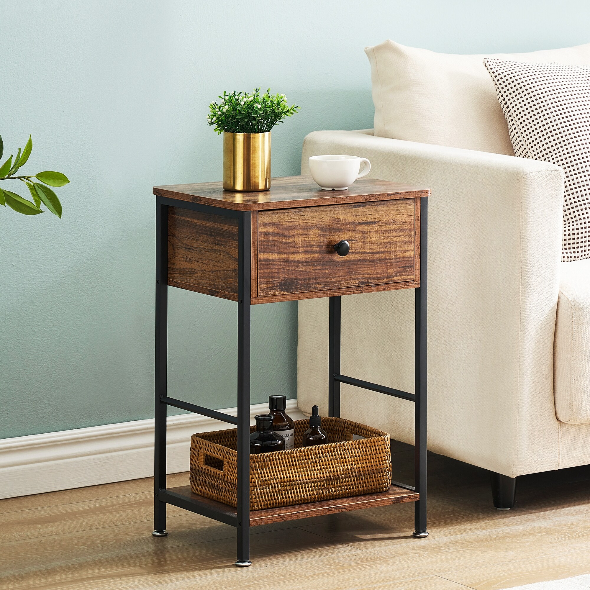Farmhouse Nightstand with Drawer and Shelf Wood Grain End Table Side Table