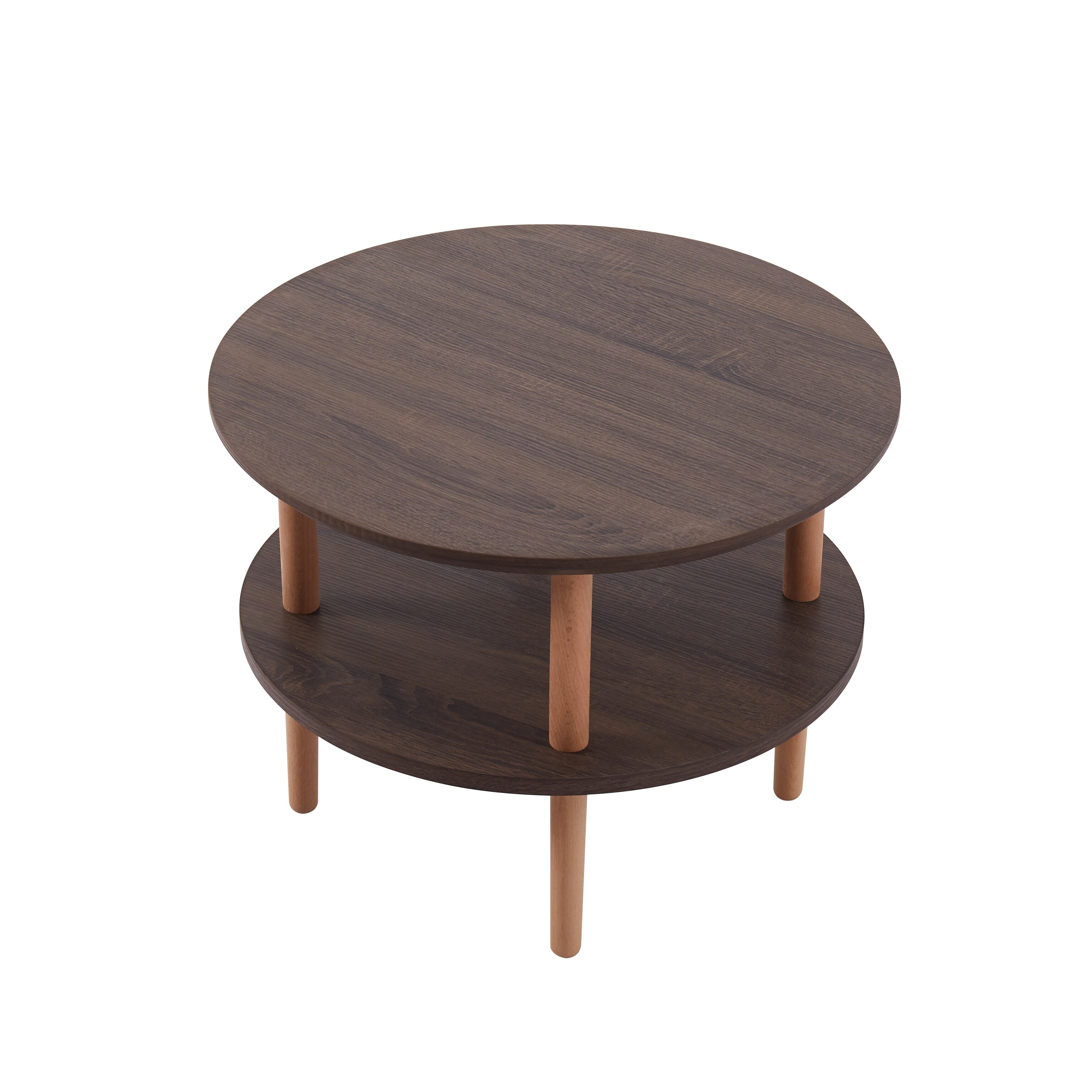 Farmhouse Round Side Table, Nordic Style End Table with 2-Tier, End Table for Living Room, Dining Room, Walnut