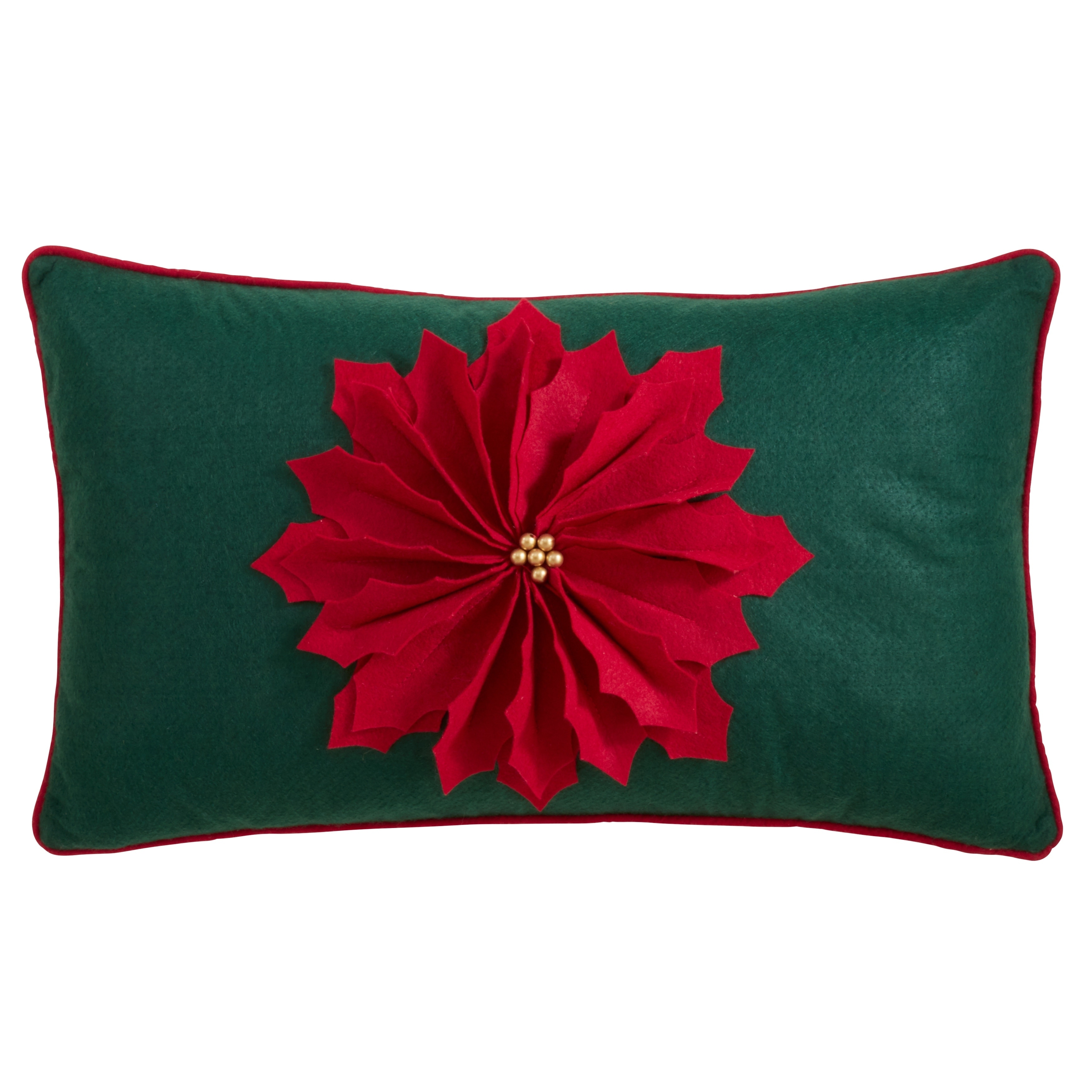 Christmas Throw Pillow With Felt Poinsettia Design.