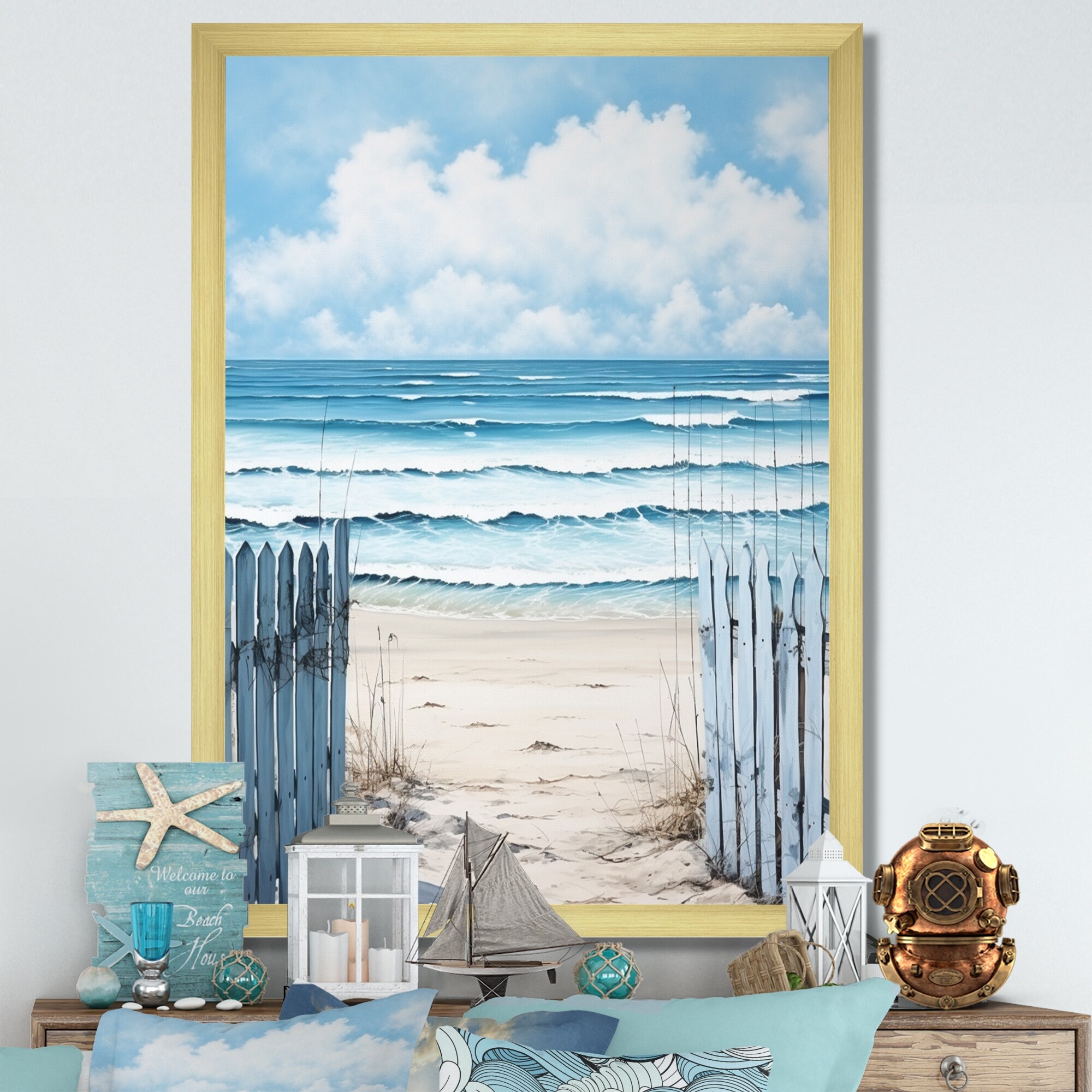 Designart "Coastal Minimalism Beach Fence II" Beach Framed Wall Decor