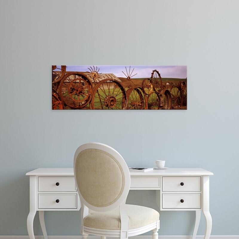Easy Art Prints Panoramic Image 'Old barn with fence made of wheels, Palouse, Whitman, Washington' Canvas Art