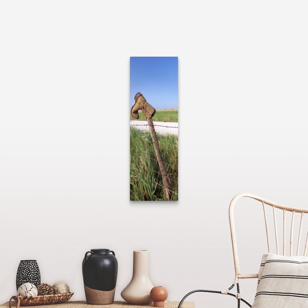 "Cowboy boot on a fence, Pottawatomie County, Kansas" Canvas Wall Art