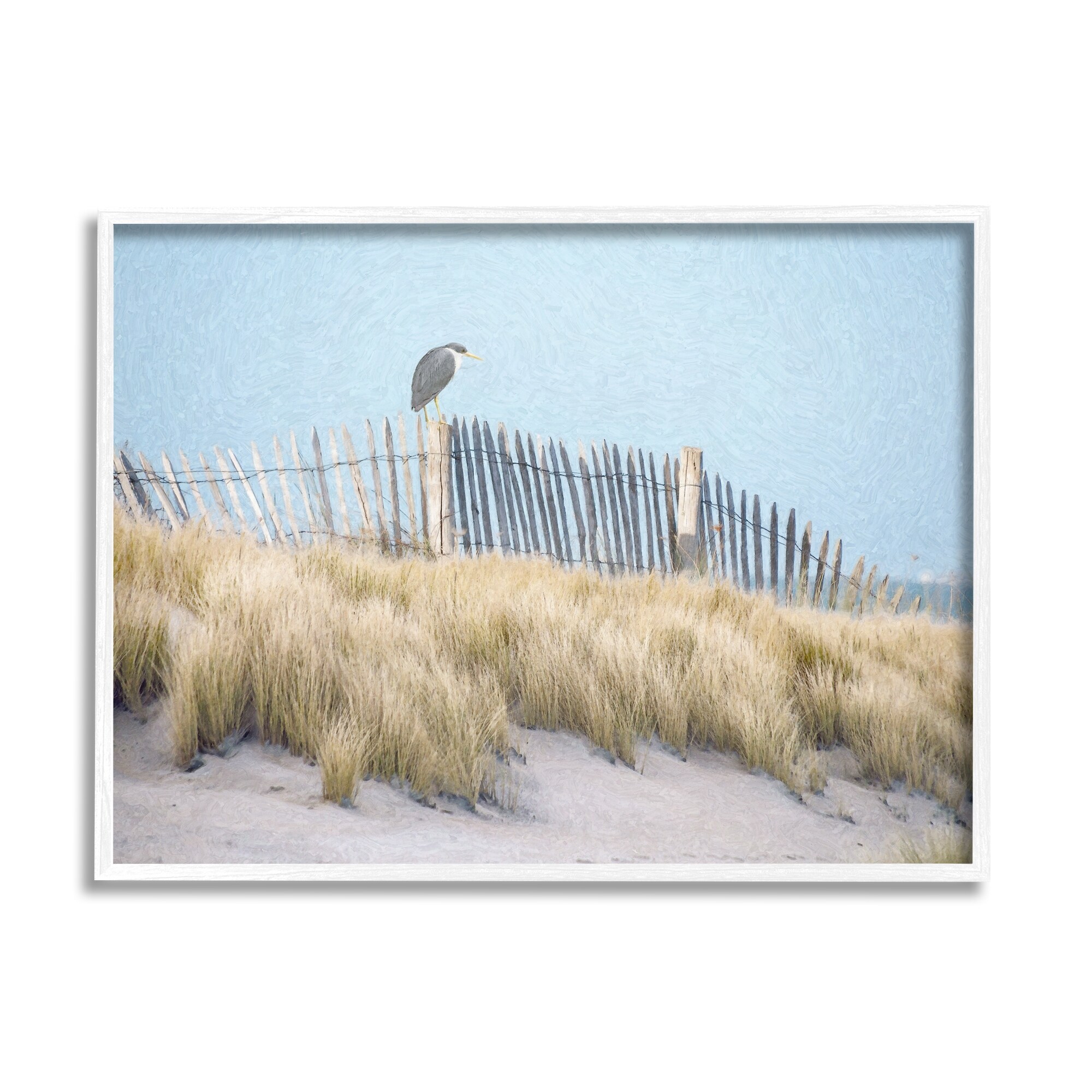 Stupell Industries Bird Perched Nautical Beach Fence Framed Giclee Art by Steve Hunziker