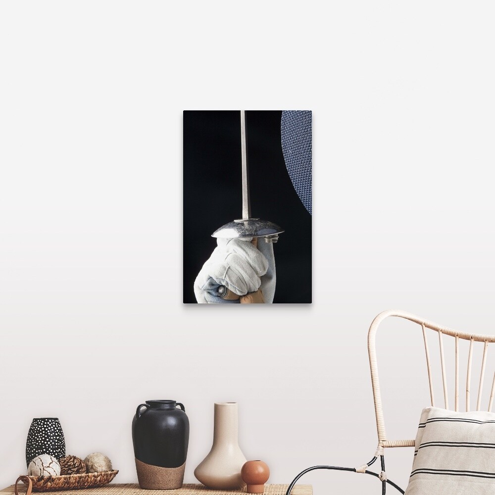 "Close-up of a person's hand holding a fencing foil" Canvas Wall Art