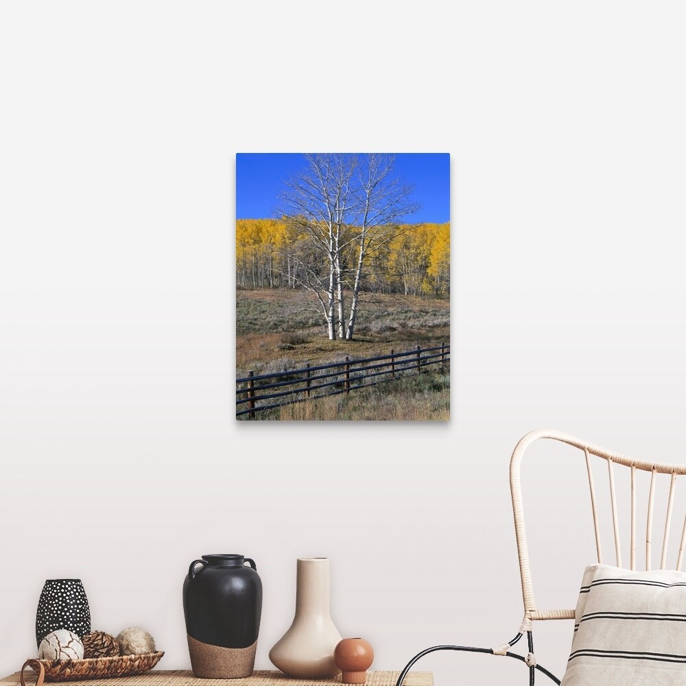 "Colorado, Aspen tree and fence" Canvas Wall Art
