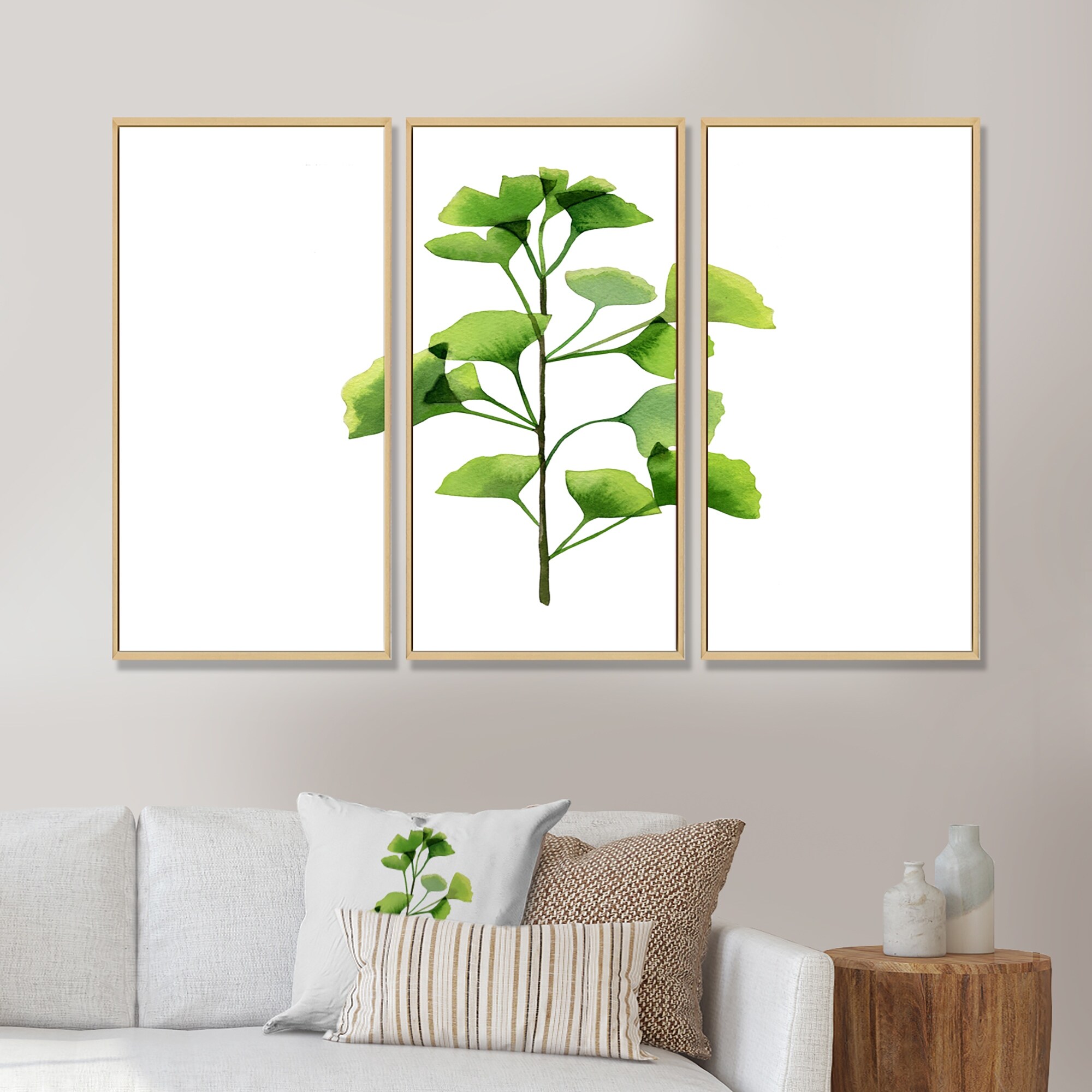 Designart "Green Field Plant Foliage" Farmhouse Framed Canvas Wall Art Set of 3 - 4 Colors of Frames