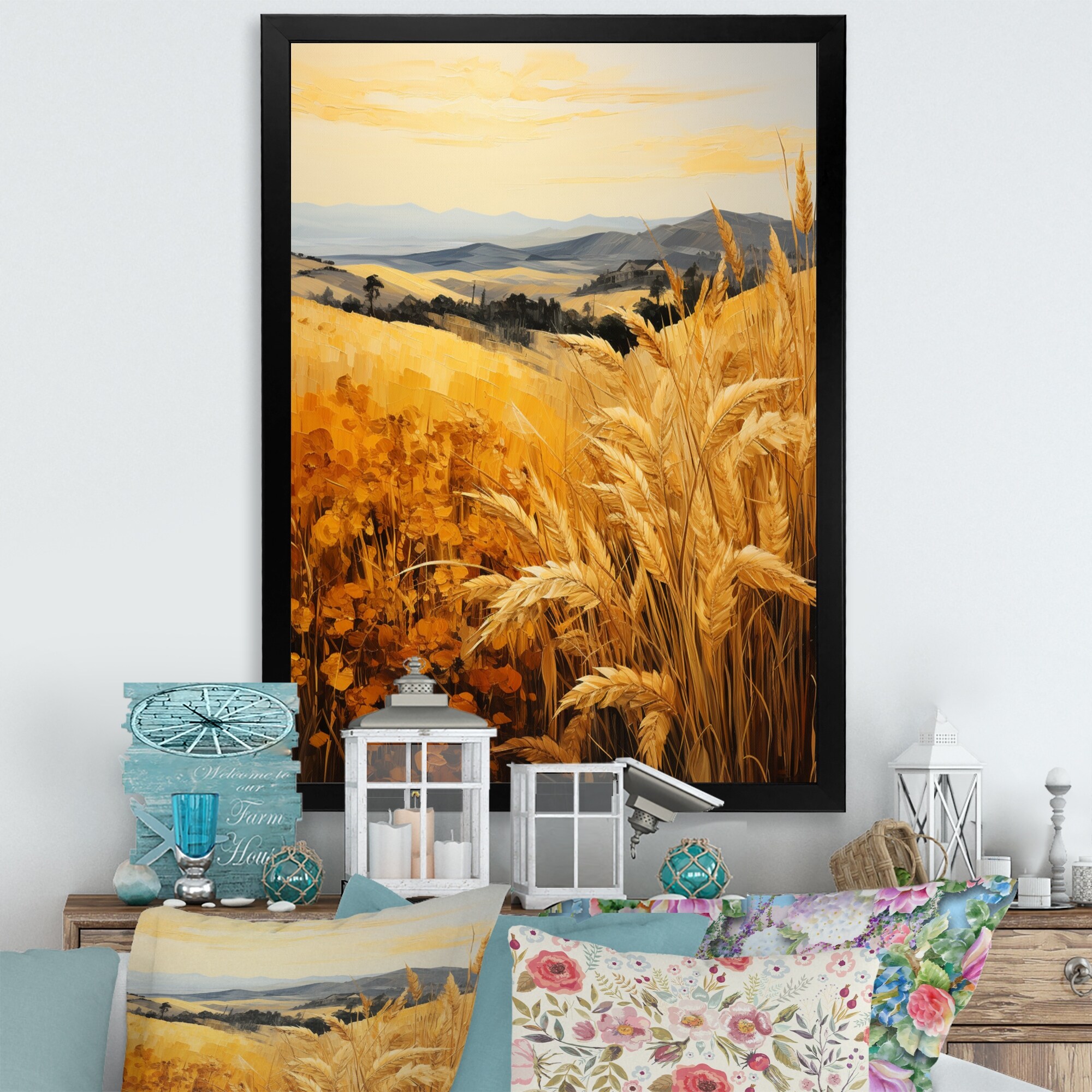 Designart "Countryside Wheat Field of Gold I" Countryside Framed Canvas Wall Art