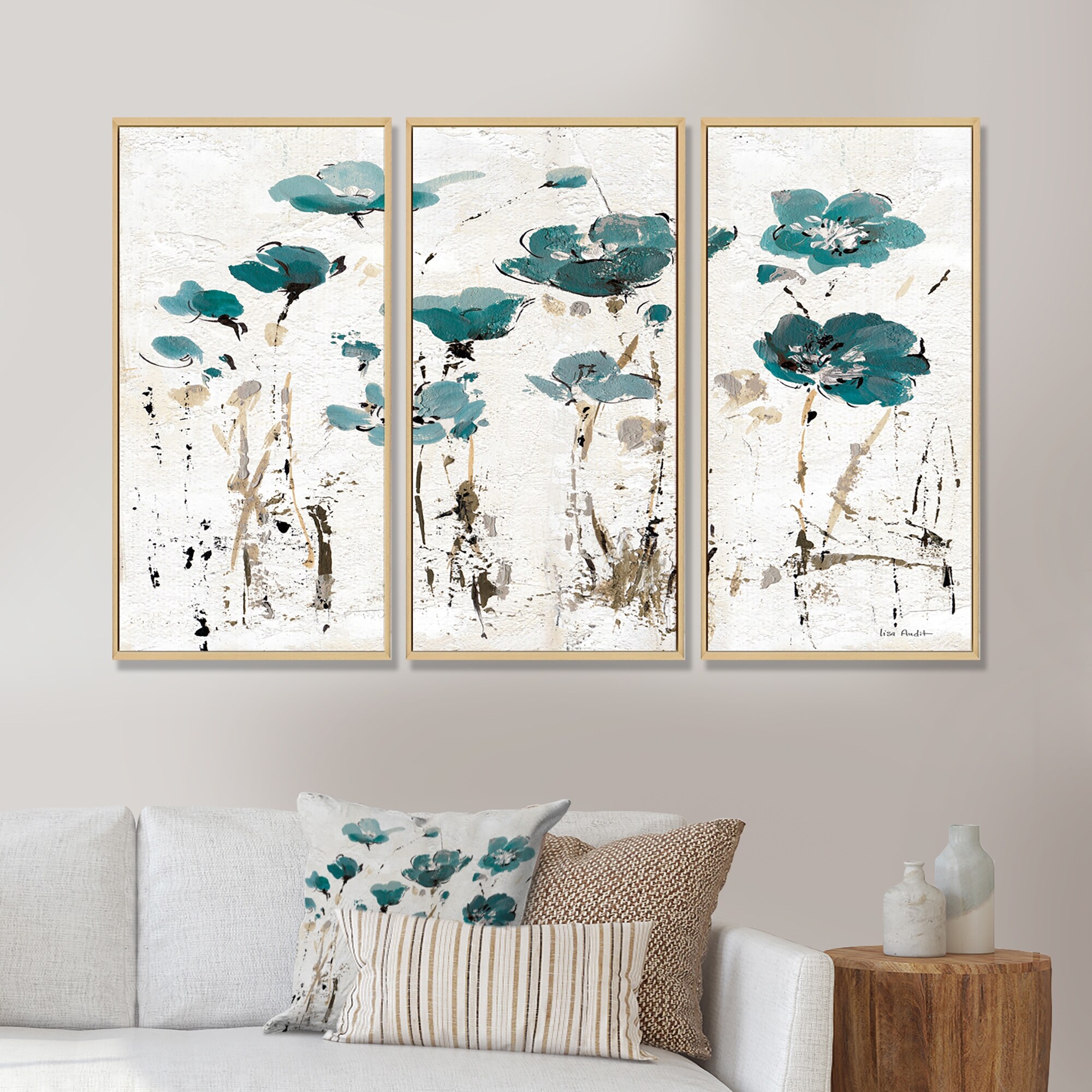 Designart "Fields of Turquoise Watercolor Flower I" Traditional Framed Artwork Set of 3 - 4 Colors of Frames