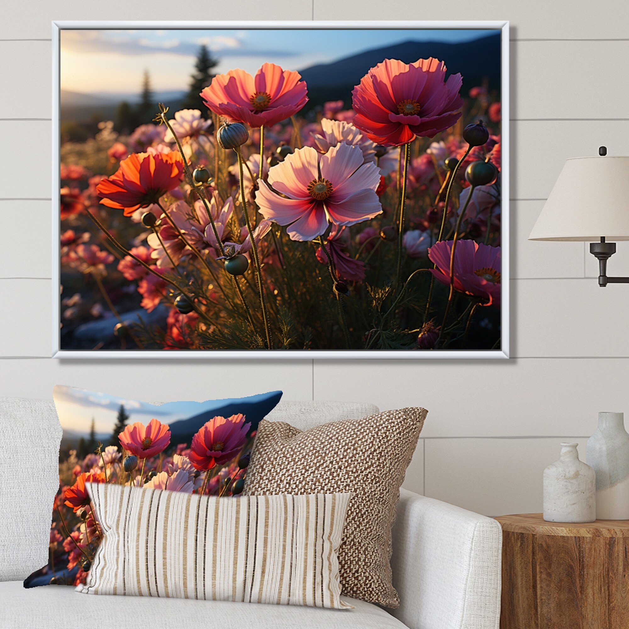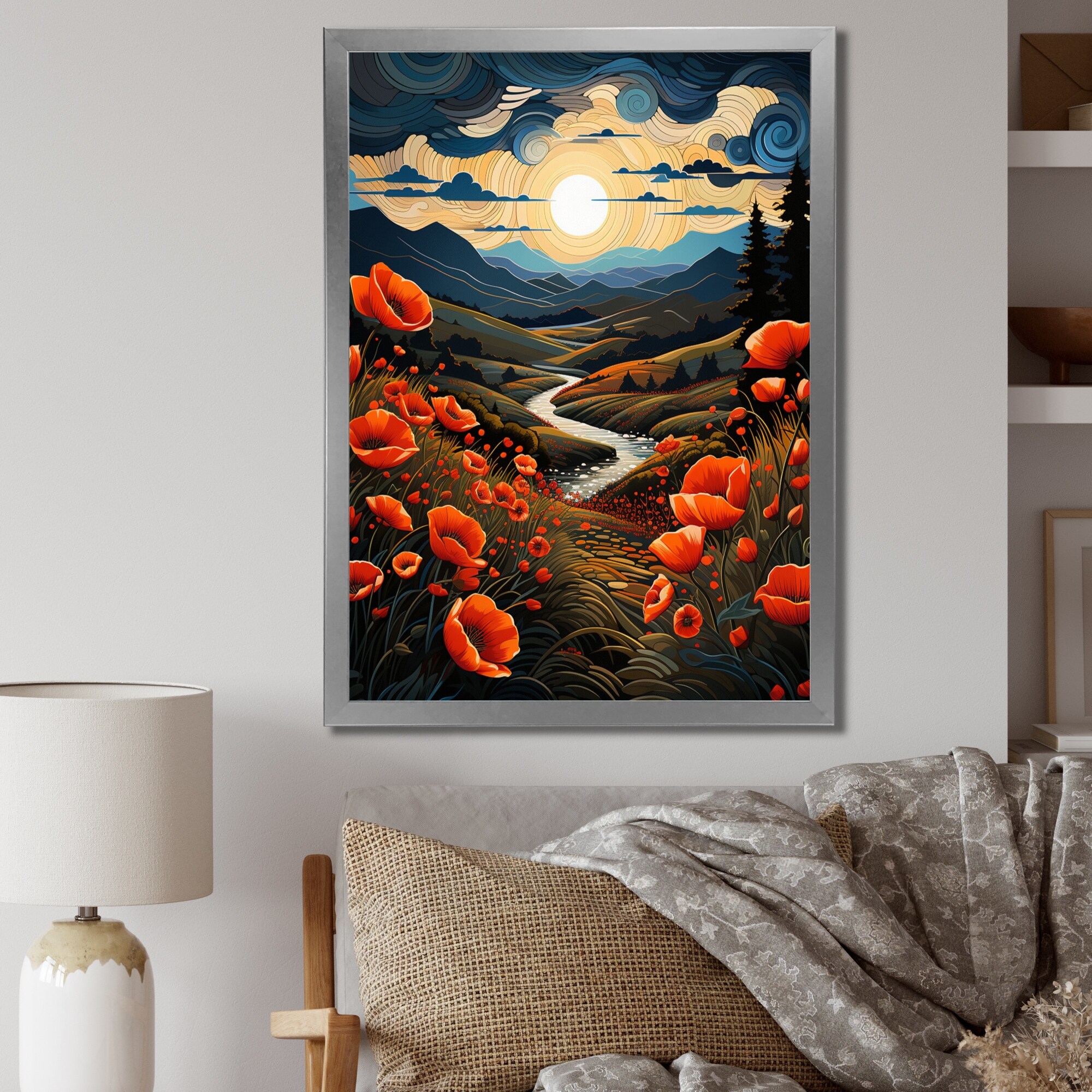 Designart "Sunrise Of Blossoming Poppie Field" Floral Framed Canvas Art Print