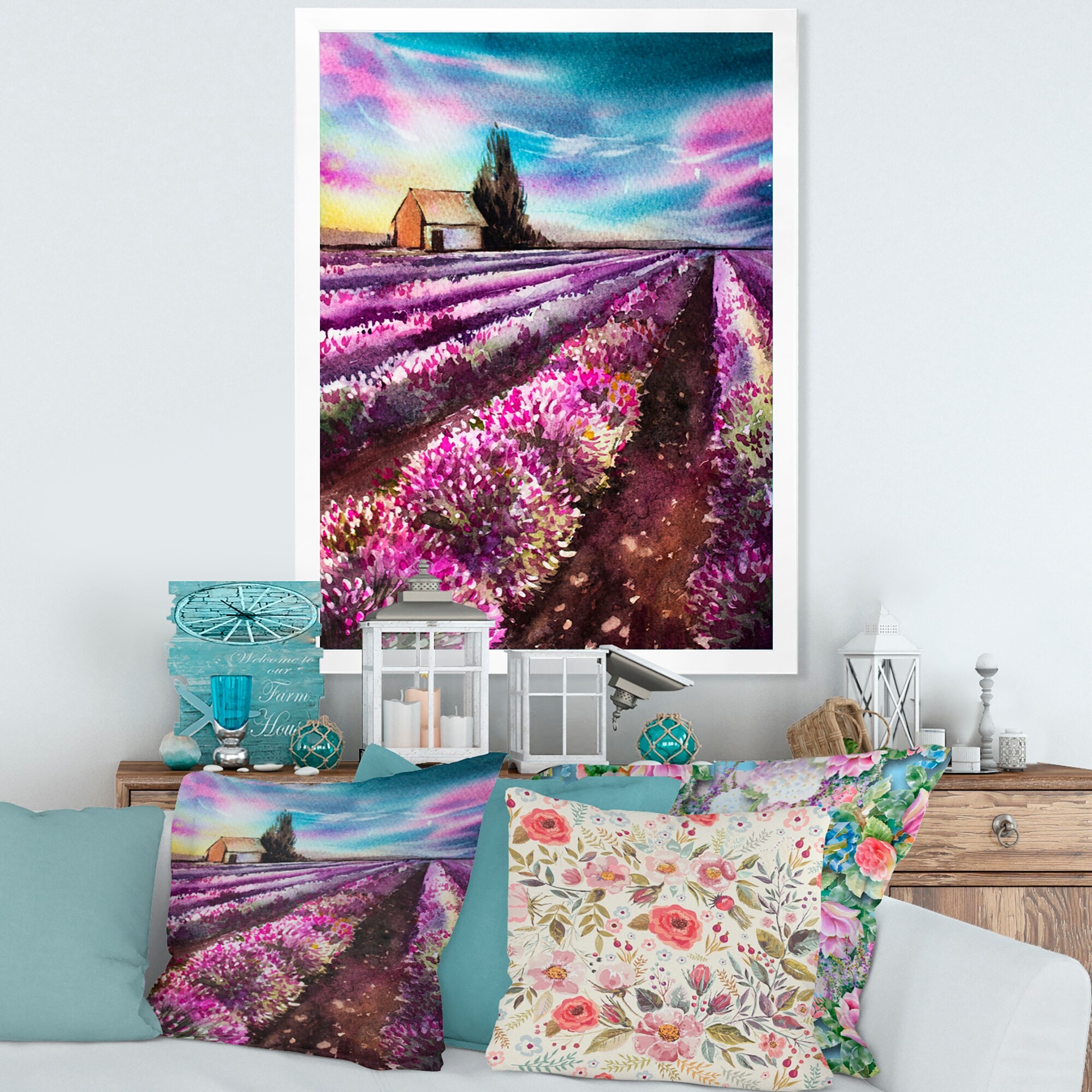 Designart "Morning Sun Over the Lavender Field" Country Framed Art Print