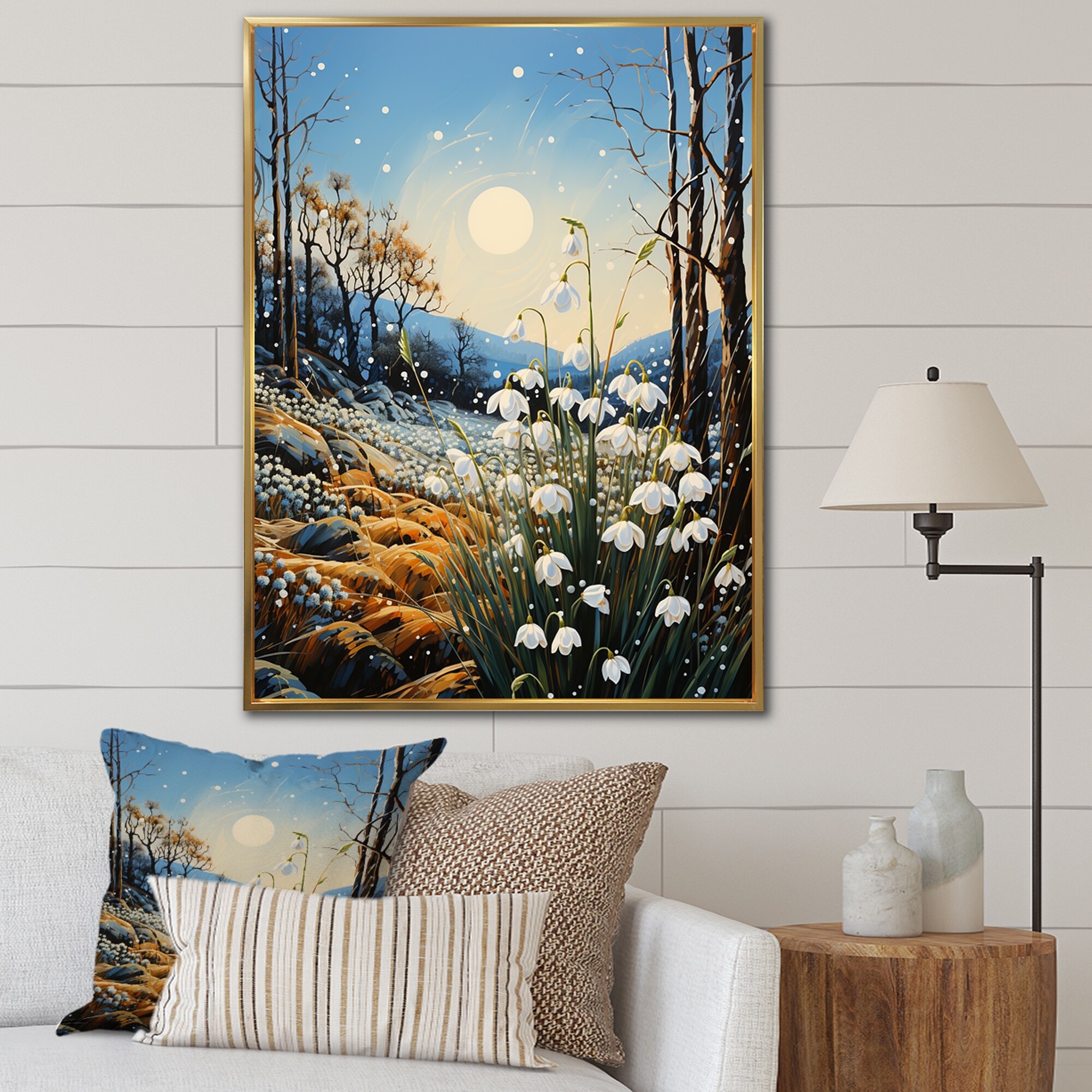 Designart "White Snowdrops Field Pointillism I" Snowdrops Framed Canvas Wall Art