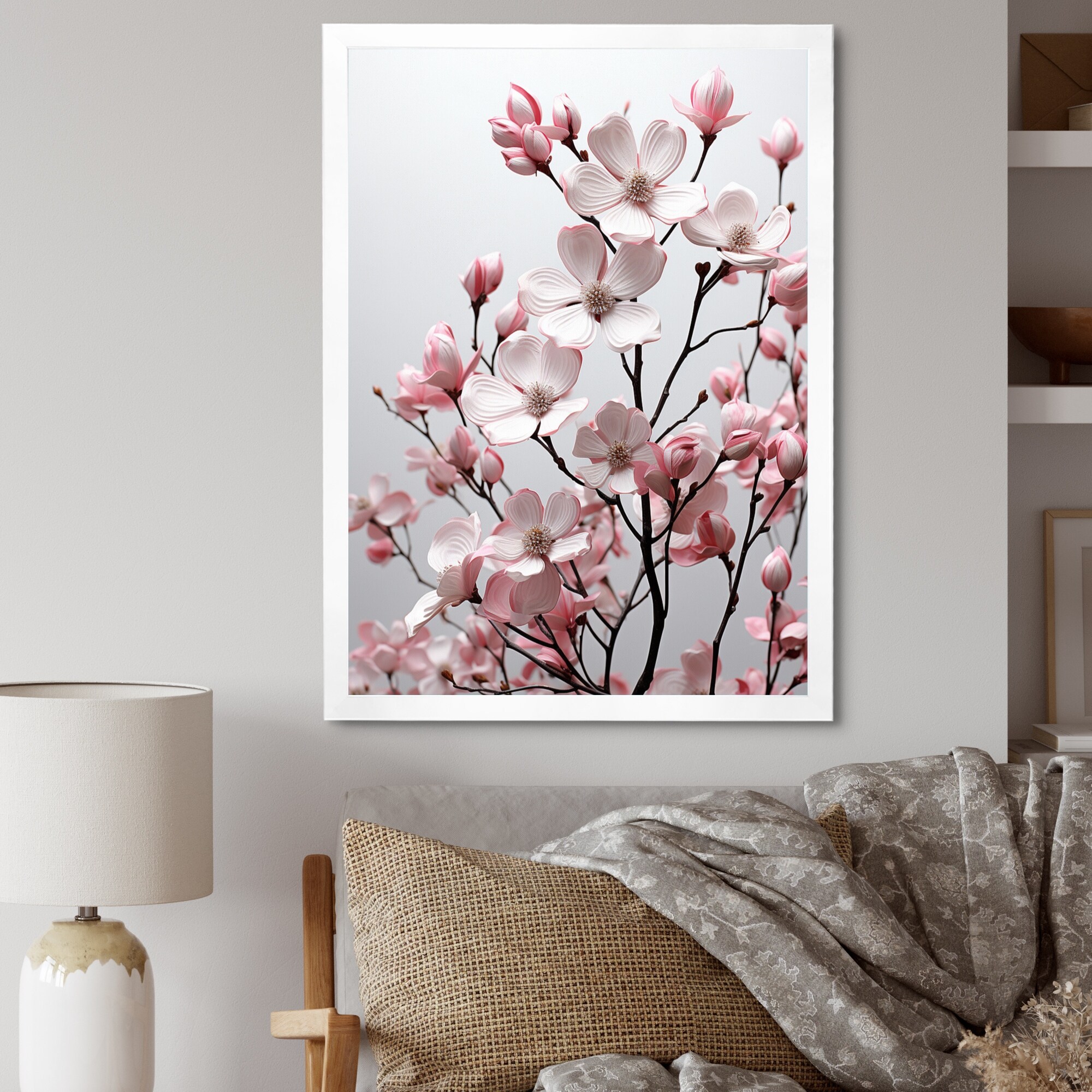 Designart "Pink White Dogwood Photo Field" Dogwood Framed Wall Art Living Room