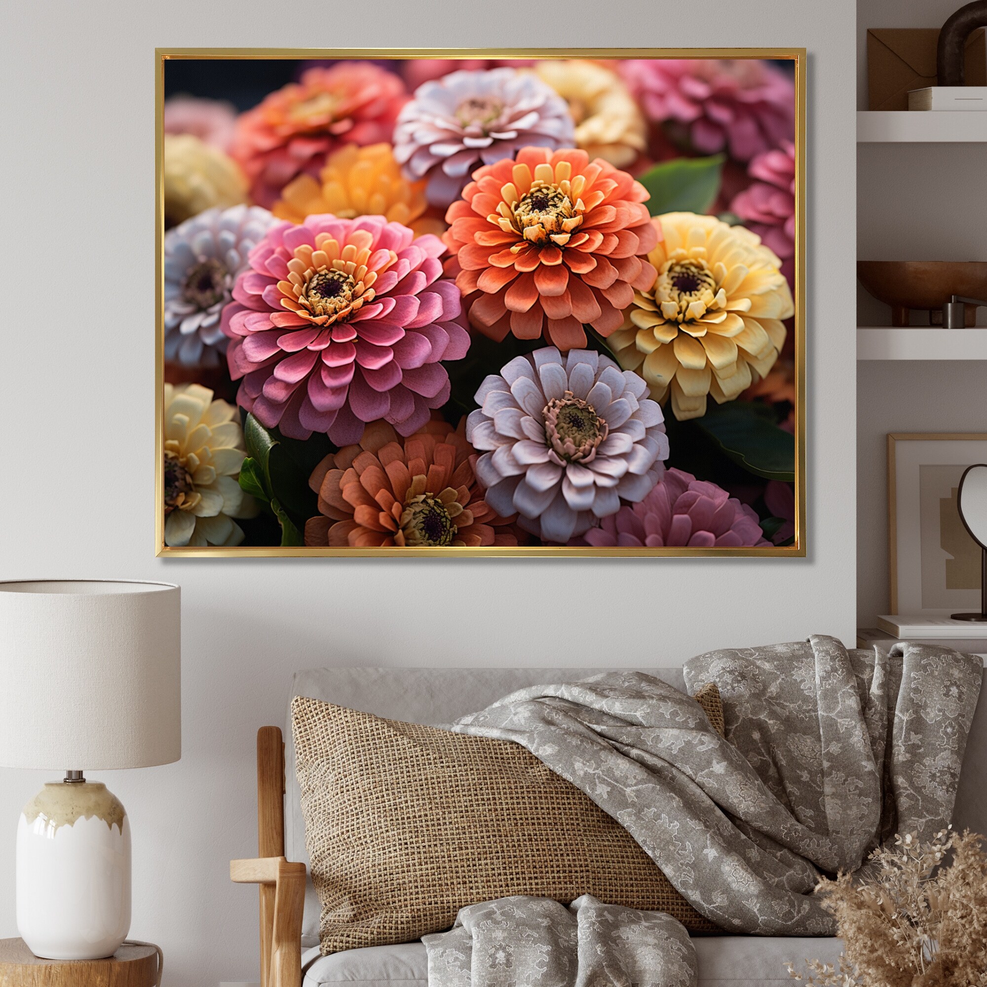 Designart "Colorful Zinnias Field Vibrant" Zinnias Framed Canvas Print