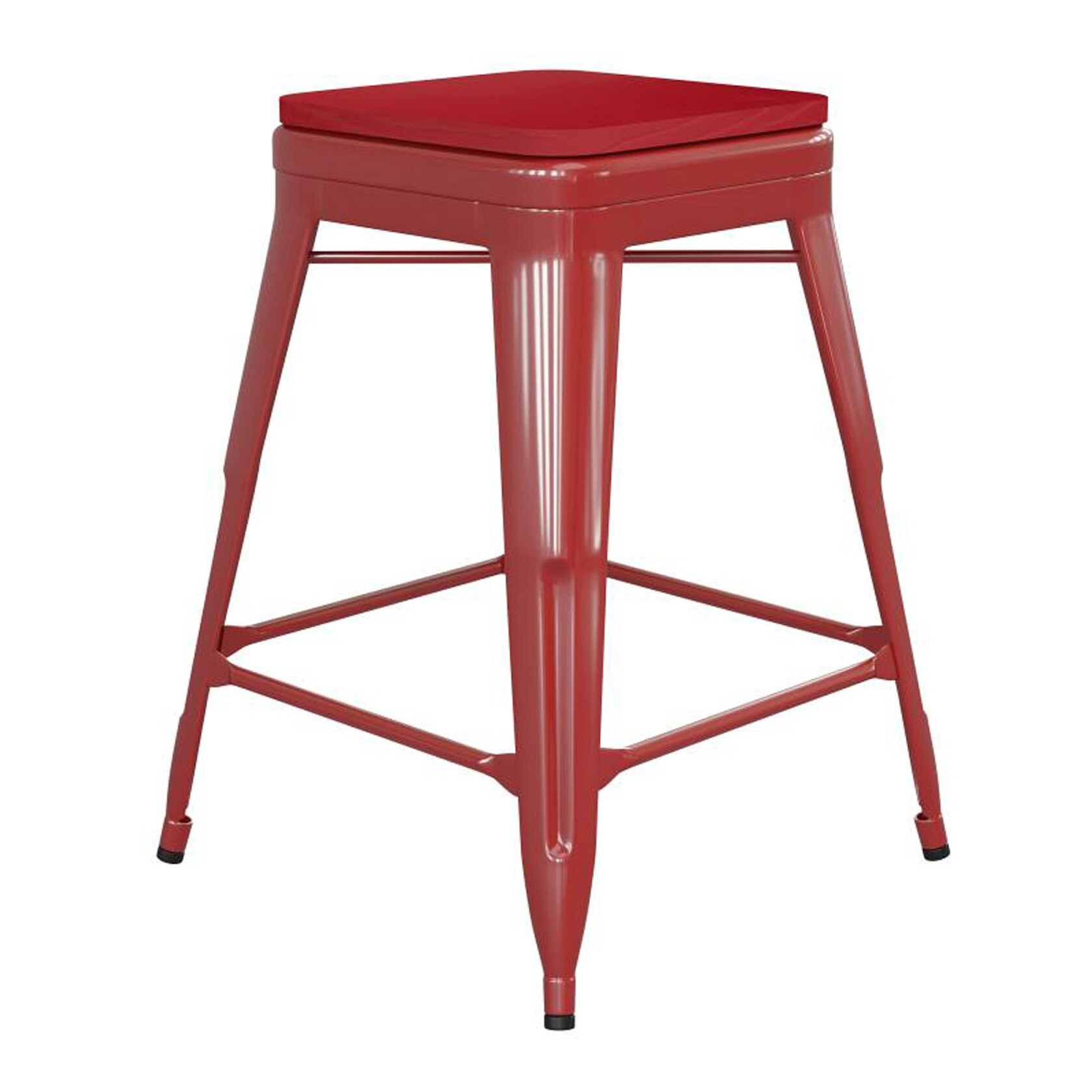 Flash Furniture 24" Red Counter Height Stool with Poly Resin Wood Seat - 16"W x 16"D x 24.75"H