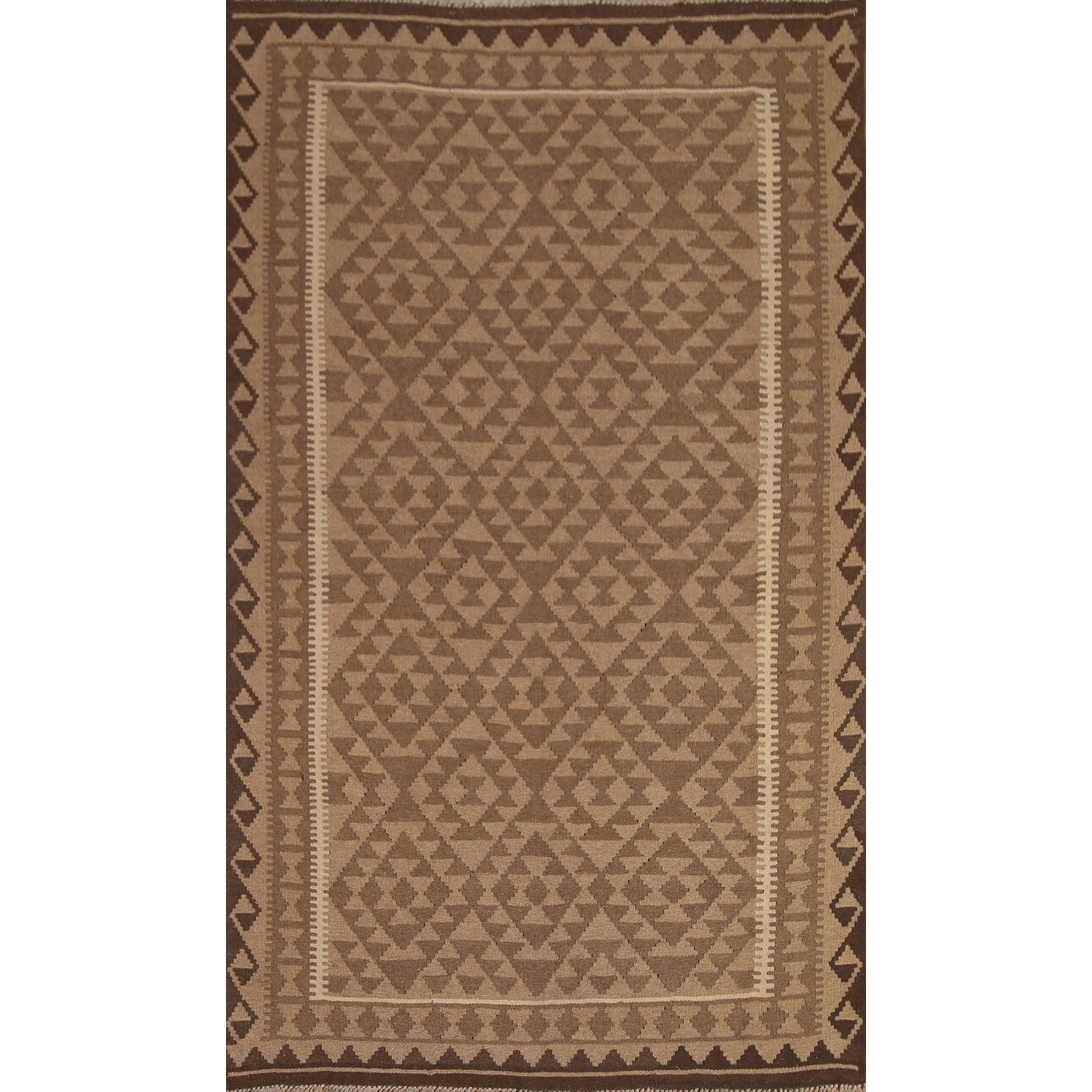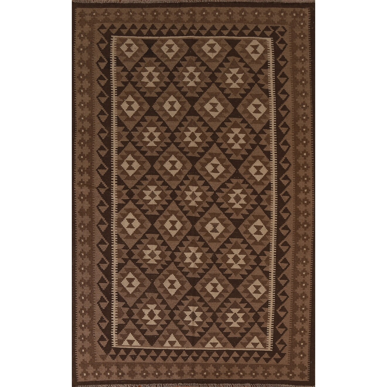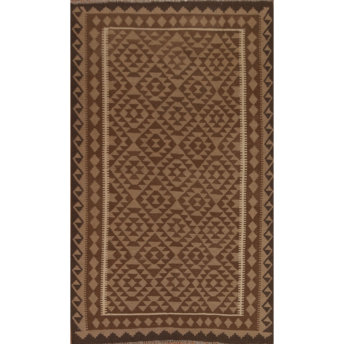 Brown Tribal Geometric Kilim Wool Area Rug Flat-weave Oriental Carpet - 5'4" x 8'2"
