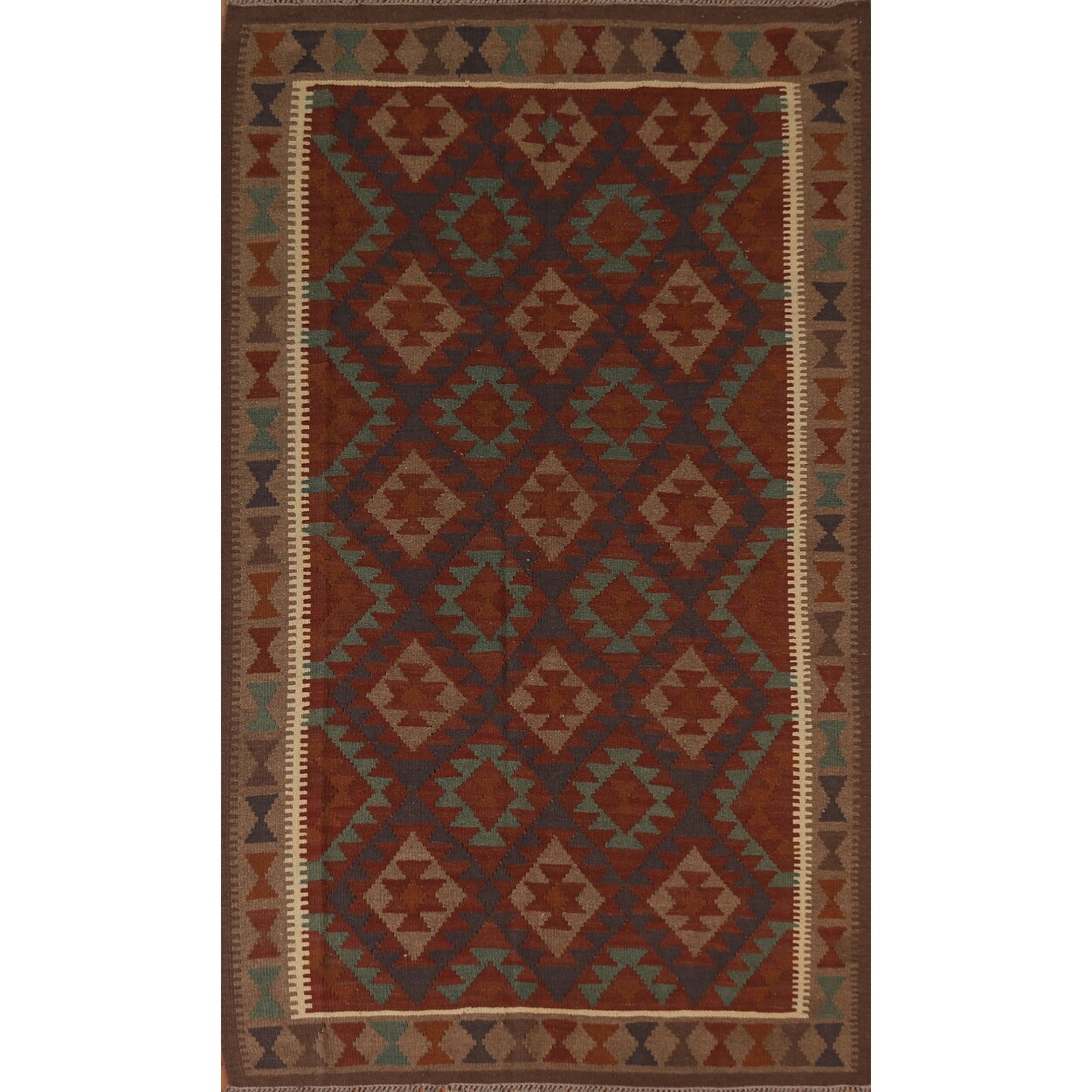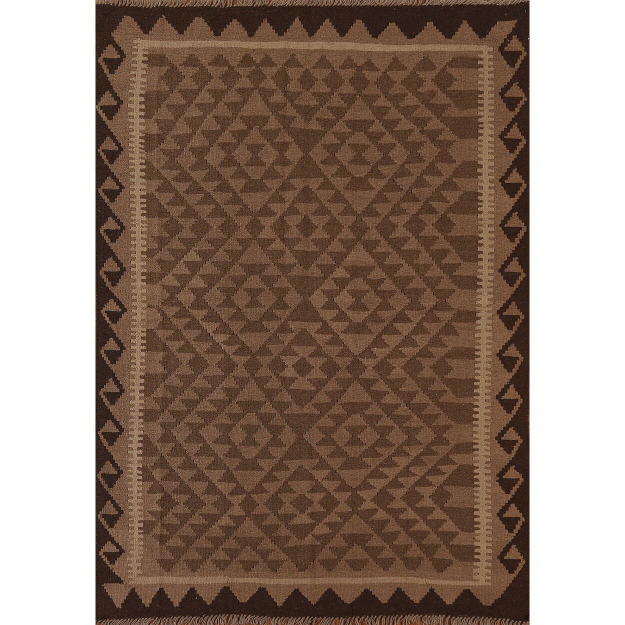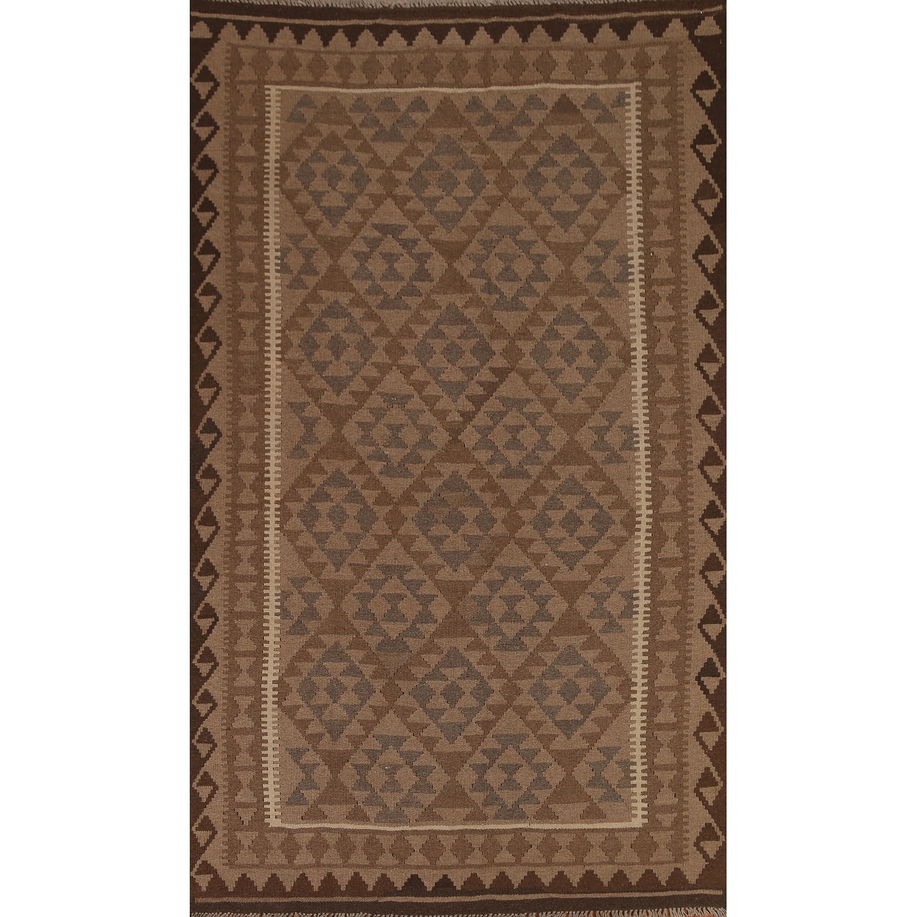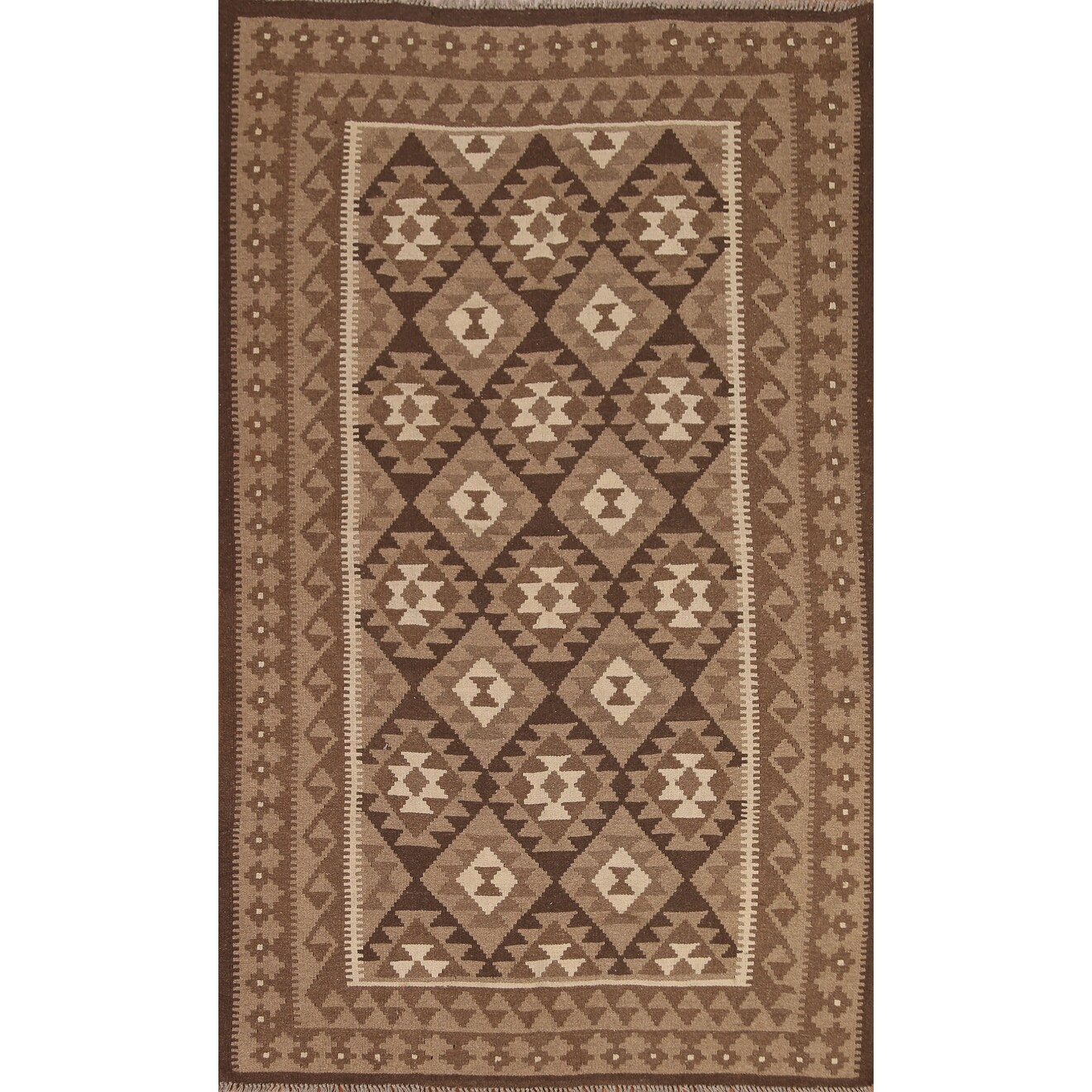 Brown Tribal Geometric Kilim Wool Area Rug Flat-weave Oriental Carpet - 5'4" x 8'2"